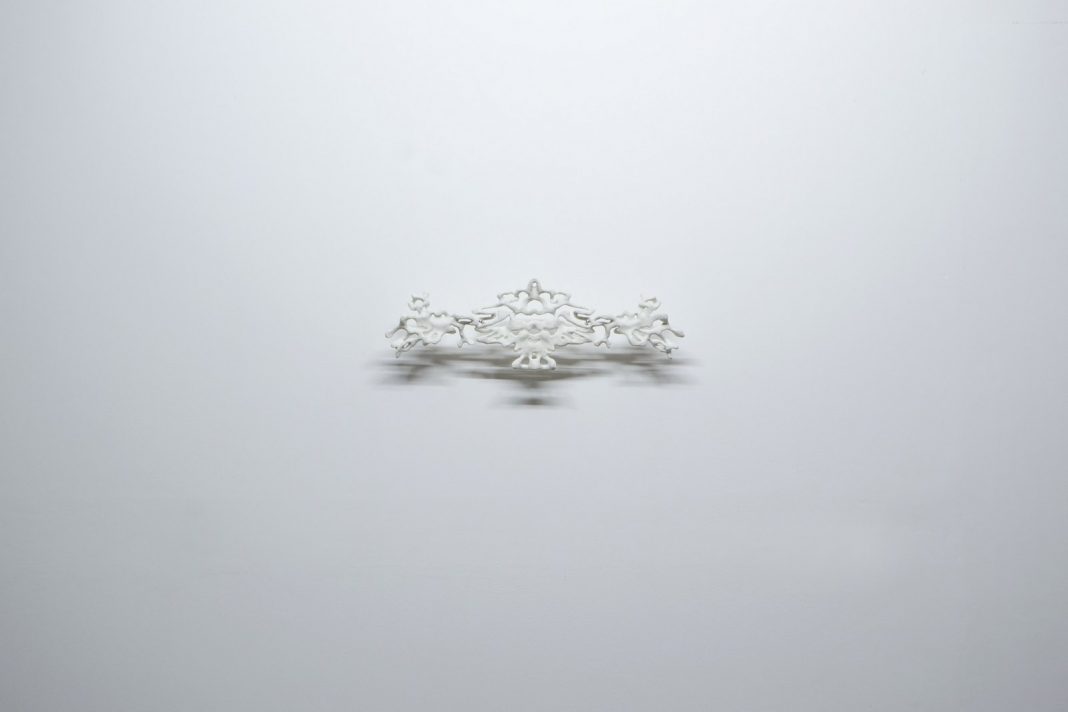 Il percorso espositivo comprende una ventina di opere scultoree, in legno, gesso e cartongesso, realizzate dal 2016 al 2023, tra le quali figurano numerosi inediti. Tre le serie principali che documentano la ricerca dell’artista: Un punto fra due cieli, Icaro fa le funzioni e Variazioni. Se le sculture lignee di pochi grammi del ciclo Un punto fra due cieli ci invitano a riflettere sull’energia vitale e generativa dell’universo, il cartongesso inciso di Icaro fa le funzioni ci pone davanti alle soglie della nostra percezione, facendoci capire che solo se distogliamo lo sguardo dall’oggetto in sé e lasciamo che la nostra attenzione cada sull’immateriale, allora siamo in grado di sentire la presenza di ciò che non possiamo vedere. La nuova serie, Variazioni, si sviluppa infine a partire dai disegni provenienti da Un punto fra due cieli che, nel cartongesso inciso, vengono ingigantiti, distorti e lavorati.