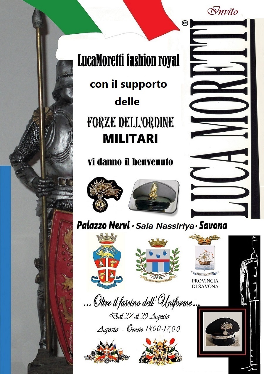 Un connubio di prestigio eleganza autenticità storia e cultura ideato da Luca Moretti strettamente in collaborazione con le Forze dell’Ordine Militari attraverso un percorso espositivo sensato e ben studiato dove Luca stesso vuole prodigare un senso di disciplina riportando in auge anche un forte status dello stile. Queste esposizioni sono uniche perché combinano elementi culturali, mettendo in risalto l’artigianato e la tradizione italiana attraverso la bellezza del Tricolore Italiano, e stanno ricevendo notevoli riconoscimenti per la loro eccellenza stilistica e culturale.