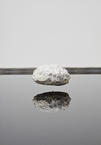 Una passerella composta da cinque moduli a geometria visibile ( quadrati di alluminio / linoleum / acqua ) e a geometria di campi di forze invisibili ( campi a levitazione elettromagnetica ) compare nello spazio stretto e lungo della galleria. Il ritmo del percorso, scandito dall’attribuzione di una specifica identità cromatica degli attori di ciascuna piattaforma, spugne marine in sospensione, culmina in una controparte equivalente (fotografica) del medesimo formato ma a coordinate verticali in cui la potenzialità assorbente delle stesse si accresce di una struttura pentagonale fatta di luce, una luce che, a differenza della naturalezza della spugna sospesa sull'acqua, ha il potere di emergere e non di esistere a prescindere. Quello che si tenta di visualizzare è ciò che accade quando in una teoria del tutto quel cono di luce che sorge e si espande, ad un tratto comincia ad assottigliarsi verso un fuoco, un punto zero da cui ri-esplode nell’indeterminatezza potenziale di un paesaggio di riferimento duale.