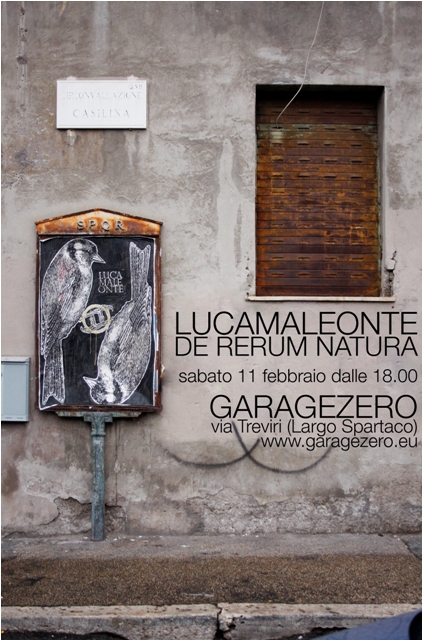 Con De Rerum Natura Lucamaleonte apre un viaggio all’interno di icone che celebrano l’estetica e la scienza. Come il pensiero di Lucrezio riconduce l’origine all’aggregazione degli atomi nello spazio infinito, così l’artista attraverso l’unione di campiture differenti crea un archivio di bestie che vivono solamente se in relazione. Una natura che si alimenta con il mortifero e l’esoterico, concepita intorno al simbolo, che ancora prima di essere rappresentazione rubata alla tradizione, incarna le esperienze personali dell’artista. La produzione delle opere nasce dallo studio delle architetture urbane scelte da Lucamaleonte per valorizzare la città e realizzate su poster di diversi formati ospitati da GarageZero per l’occasione.