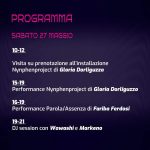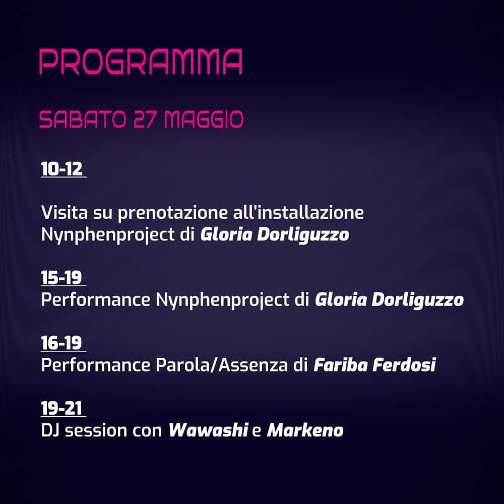 10-12 Visita su prenotazione all’installazione Nynphenproject di Gloria Dorliguzzo Dalle ore 15 performance Nynphenproject di Gloria Dorliguzzo
