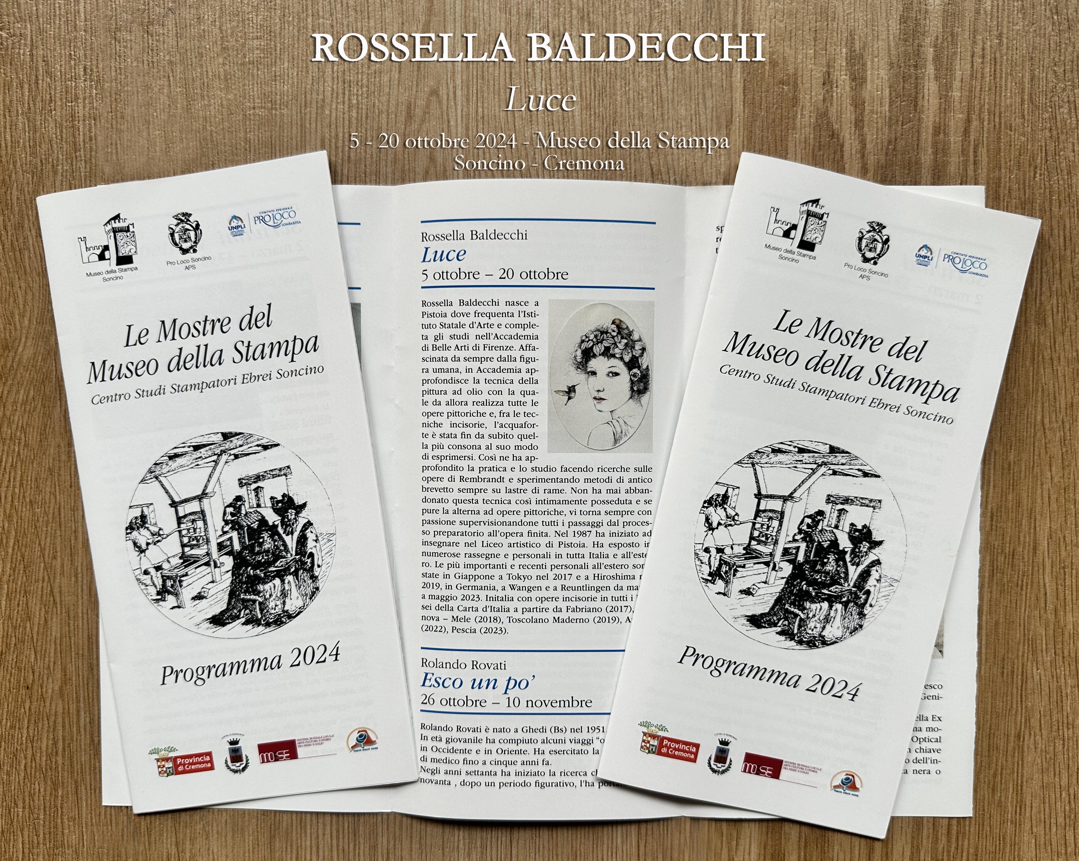 Si apre il 4 Ottobre 2024 presso il Museo della Stampa Centro Studi Stampatori Ebrei di Soncino un' esposizione artistica con una ventina di opere di Rossella Baldecchi che sarà possibile visitare fino al 20 ottobre 2024.