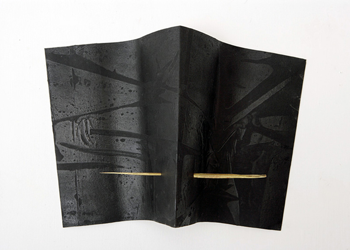 …Queste opere piegate sembrano ventagli, di natura onirica, trafitte da aghi di tutte le forme e materiali. Possono essere appesi al muro o posizionati su un mobile. Condensano in essi non solo l'immagine trasposta del ventaglio reale, ma anche quella dei grandi pettini e delle sublime spille, che mantengono le acconciature architettoniche. Sono sapienti composizioni, ma altamente concettuali che ritraggono le donne fantasticate, senza mai rappresentare il corpo umano, descrivendole solo attraverso la finzione dei lori accessori.