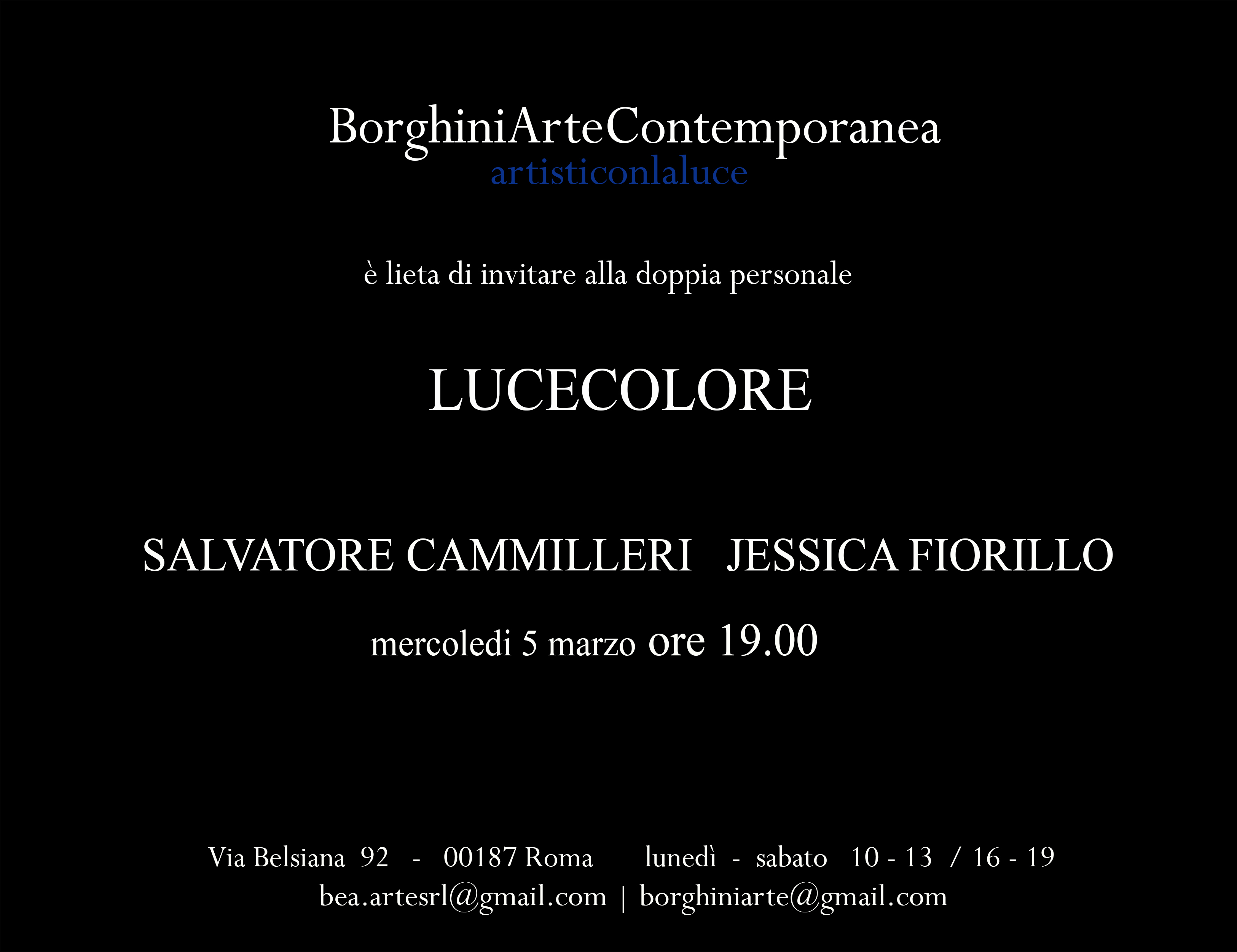 Mercoledì 5 marzo alle ore 19.00 la galleria Borghini Arte Contemporanea inaugura “LUCECOLORE” di Salvatore Cammilleri e Jessica Fiorillo