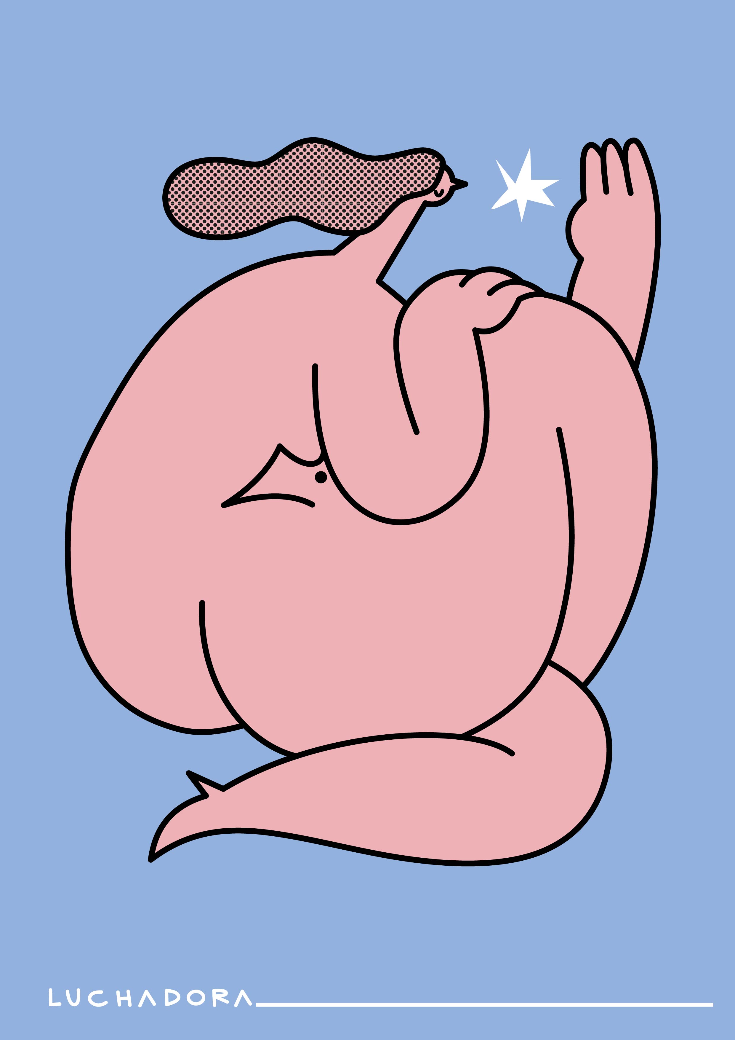 La mostra si configura come una micro-esposizione di Alessandra Marianelli, in arte Luchadora. Vengono esposti 16 poster illustrati, frutto di precedenti collaborazioni, commissioni private e progetti personali. Al centro delle raffigurazioni: corpi di donne che non si conformano allo stereotipo estetico-dominante, forme che diventano manifesto non solo pubblicitario, ma politico, sociale e culturale. La forma espressiva di ogni corpo, così come la scelta dell’inserimento di un testo, diviene un messaggio che va oltre le convenzioni di bellezza, scavalcando l’ostacolo dello stereotipo e dello stigma. Con un tratto lineare e morbido e una palette di colori essenziali mette in risalto azioni di lotta e gesti quotidiani. Nelle sue composizioni, come negli intenti, il corpo è centrale e messo in evidenza da contrasti cromatici, tinte piatte e texture. Le sue forme semplici e sensuali non si limitano a riempire lo spazio del poster, ma invadono, straripano, occupano.