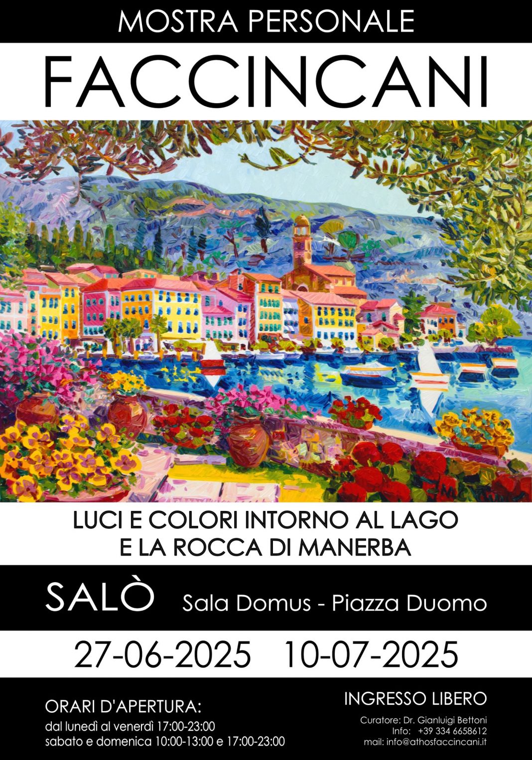 La Sala Domus di Salò dal 27 Giugno al 10 Luglio 2025 ospiterà una mostra personale del Maestro Athos Faccincani, artista che ha saputo creare un linguaggio pittorico inconfondibile, capace di evocare emozioni vivide attraverso un uso straordinario della luce e dei colori.