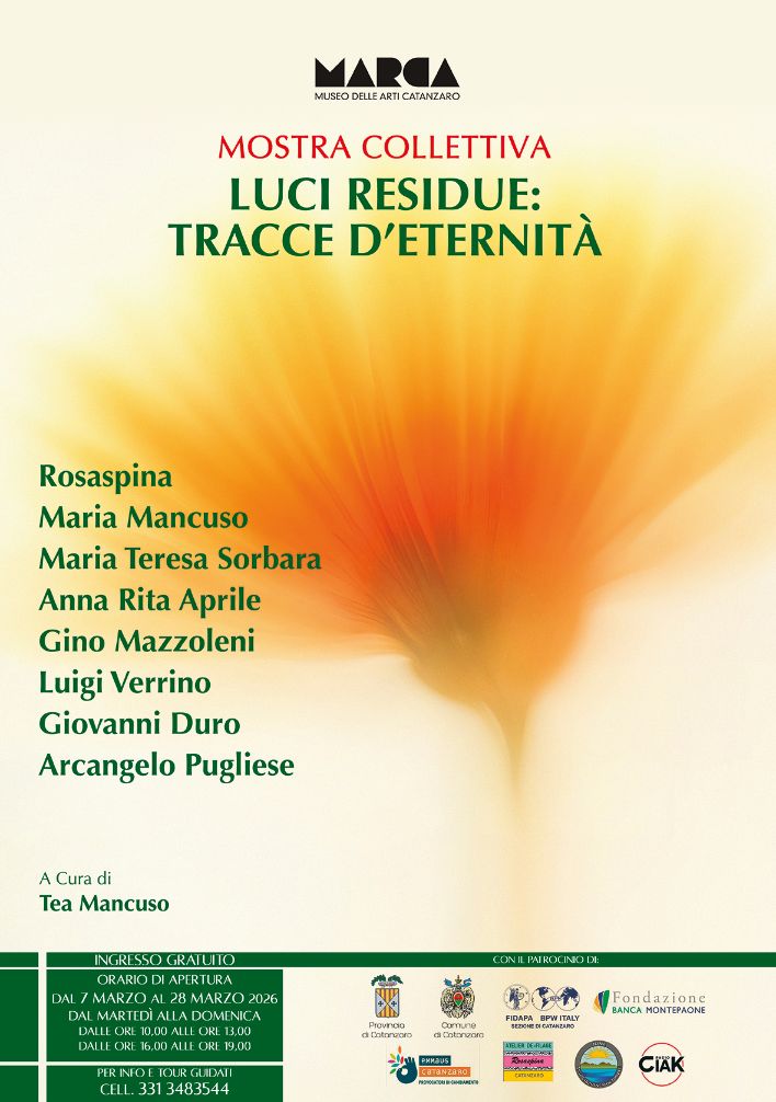Un viaggio visivo potente che vede protagonisti otto maestri contemporanei, ognuno con un linguaggio unico: Rosaspina-Gino Mazzoleni-Luigi Verrino-Maria Mancuso-Giovanni Duro-Maria Teresa Sorbara-Anna Rita Aprile-Arcangelo Pugliese a cura di TEA MANCUSO