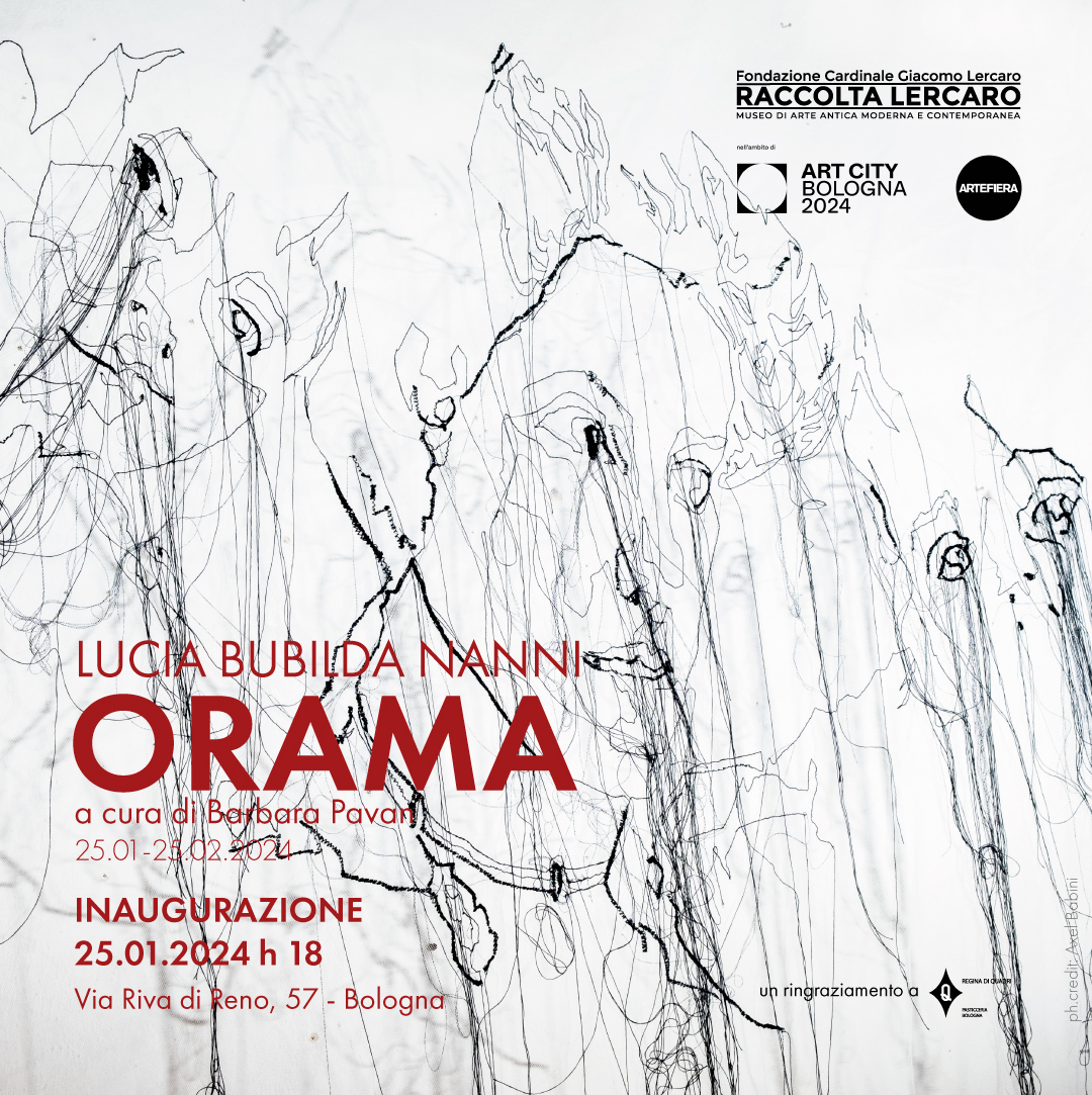 Nell’ambito di ART CITY Bologna 2024 e in occasione di Arte Fiera, la Raccolta Lercaro inaugura il 25 gennaio alle ore 18 ORAMA, una personale di Lucia Bubilda Nanni a cura di Barbara Pavan, visitabile fino al 25 febbraio 2024.
