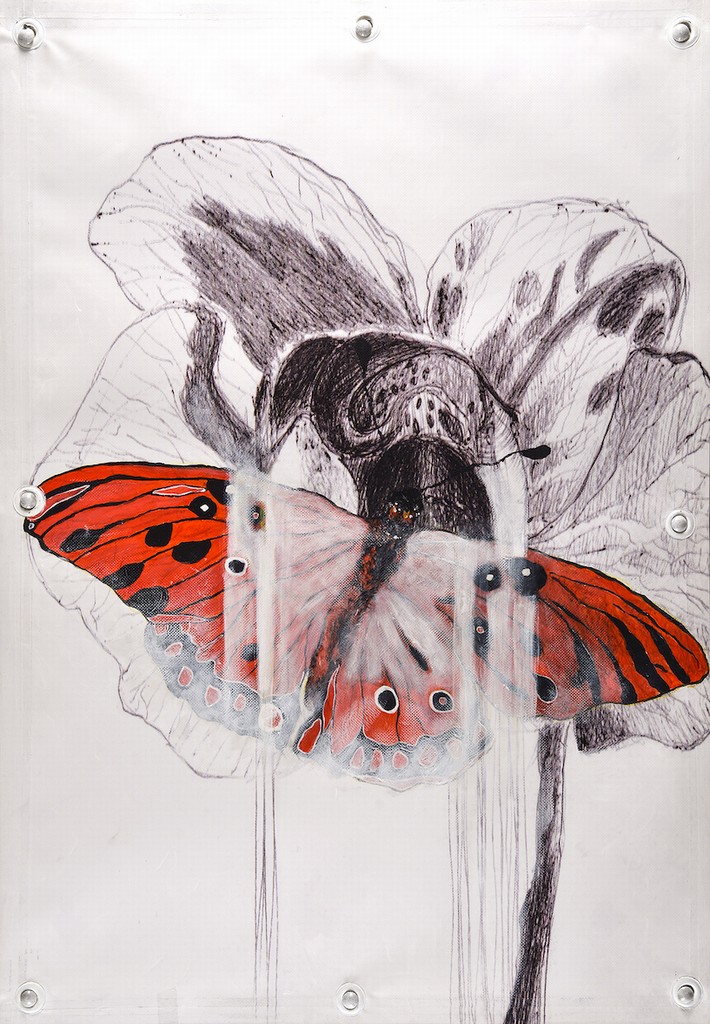 In mostra lavori inediti realizzati in PVC e acrilico, accompagnati da 10 disegni tratti dal libro d’artista “Di-segnare” edito da EffEErrE