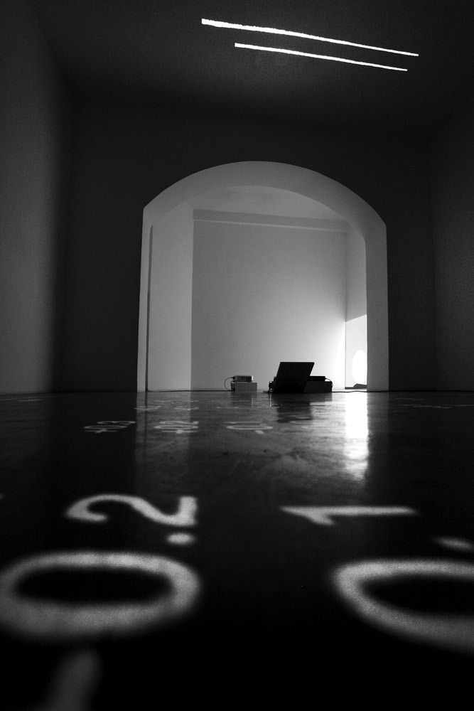 Le installazioni di Lucia Romualdi sono composizioni di luce che occupano gli spazi: cifre, diagrammi numerici, tabulati di maree e di stelle. Un lirismo matematico che si avvale anche di procedimenti tipici del montaggio cinematografico.