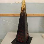 Obelischi, scudi e composizioni astratte hanno in comune una materia torturata, lacerata, una materia che grazie alla sua abilità si fa carne e si offre, orgogliosa e spoglia, allo sguardo di chi l’osserva.