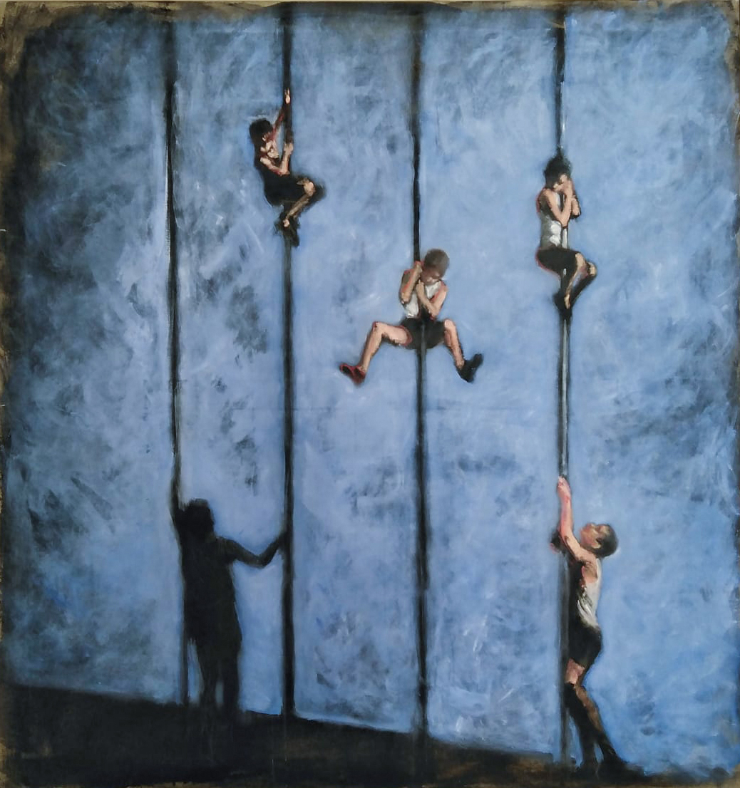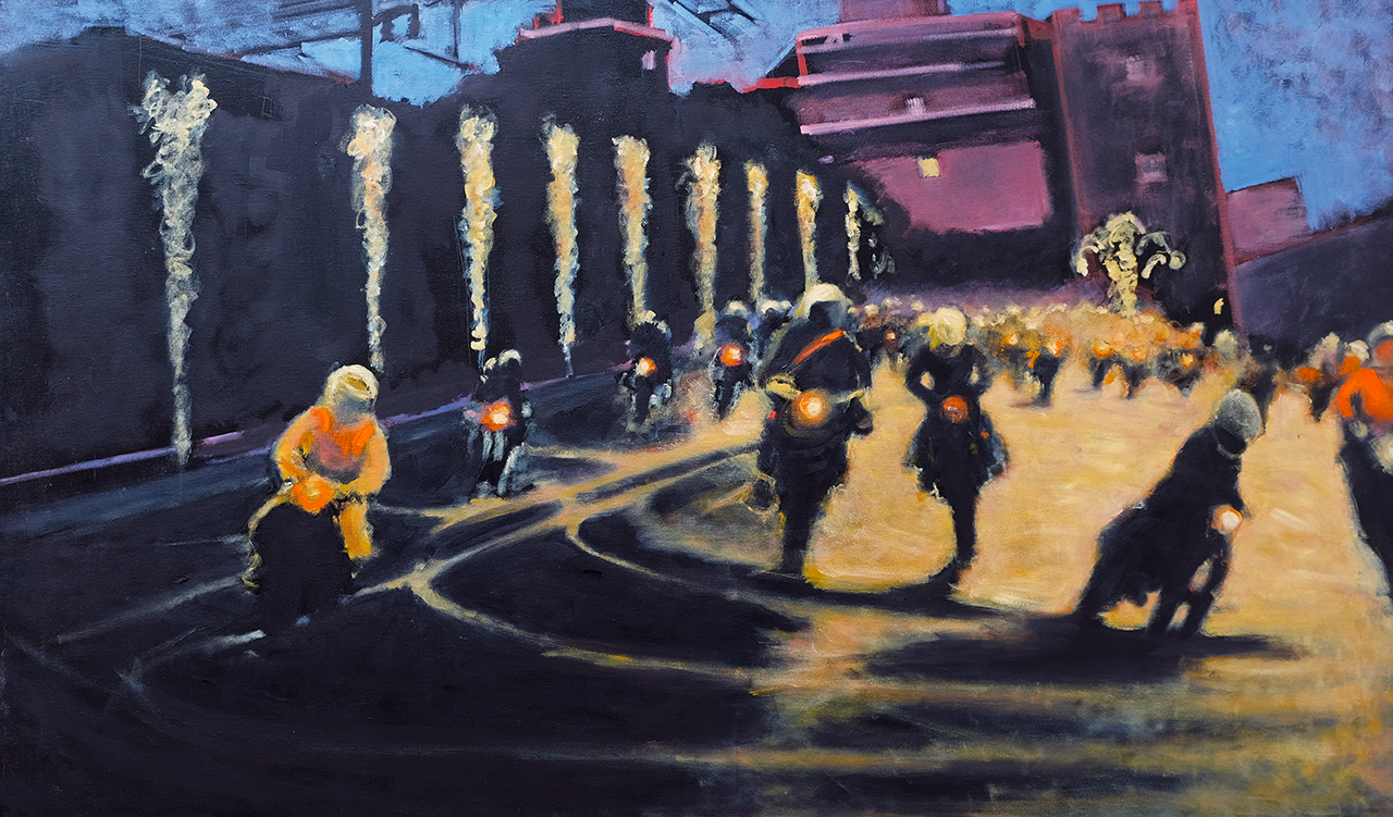 In questo magma si muovono le ninfe notturne di Cafagna tra i fari abbaglianti delle automobili, lo spumeggiare di motociclette, immagini iconiche del grande cinema che passano dalla leggerezza della luce a quella delle pennellate per esprimere l'urgenza di resistere al frastuono, al fulgore artificiale. Cafagna, nella sua piena fase creativa attuale, resiste e insiste sui valori persistenti della sua arma principale contro l'appiattimento culturale: la produzione pittorica.
