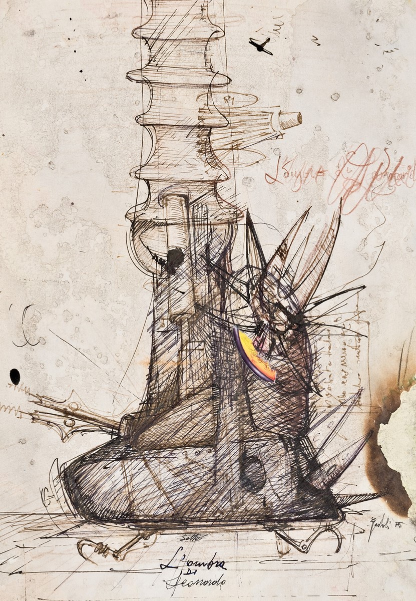 Negli anni Settanta e Ottanta, l’artista lavora, infatti, a paesaggi ibernati, costruzioni autogeneranti, animali meccanici, erotismi metallici, città ideali plastificate ed elettriche, installazioni e sculture, ma anche a cartelle di disegni e grafiche caratterizzate da perfezione tecnica e attenzione al dettaglio. La stessa cura che l’artista riserva ai bozzetti: più che schizzi, veri e propri progetti ingegneristici, funzionali alla meccanizzazione delle sue sculture, molte delle quali pensate per l’esterno.