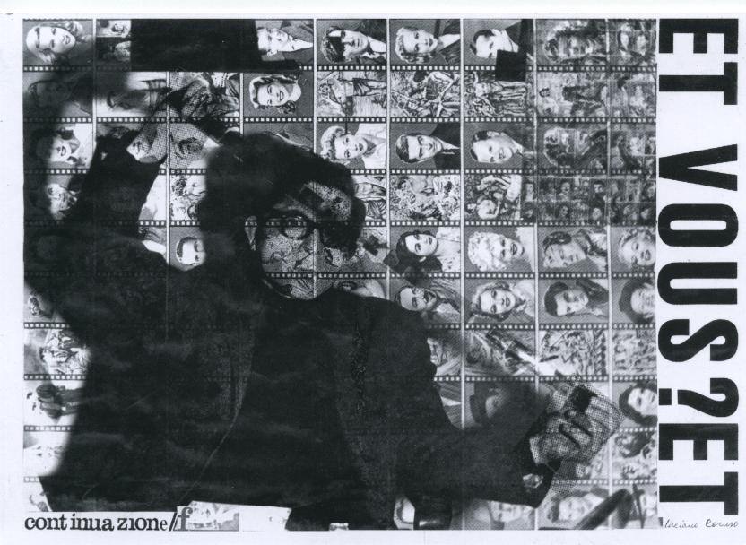 Tra le opere esposte (pagine, libri e sculture) vi è Continuazione F., il manifesto allegato a questo volumetto, che si presenta composto da due immagini: la prima, sul retto, propone la foto di un Caruso intento a controllare la pellicola di un film che aveva girato con Franco Visco, la seconda invece, sul verso del foglio, è formata da un collage con foto di interventi e di manoscritti di Emilio Emilio Villa. È evidente che il manifesto rimanda a temi fondamentali discussi in quegli anni dal gruppo napoletano di Continuum la cui denominazione indica l’esperienza del lavoro collettivo in una sorta di sintonia continua ideativa e operativa, un’esperienza comune di antiscrittura, dove si nega la figura dell’artista e la poesia come funzione del sistema. Come lui stesso scrive “andare oltre gli schemi”, considerando che “la poesia tende ad essere non più esercizio letterario, ma azione – anzi gesto, e divenire sempre più scrittura – oggetto”. Più tardi il suo lavoro si sposterà su una dimensione estetica-etica, accentuando il “carattere liberatorio e totalizzante dell’esperienza estetica”. Poco per volta la scrittura esercitata su supporti e con strumenti diversi diviene sempre più “preziosa”, tutto diviene grafia: le pietre, le cortecce, i petali, il corallo, le perle, i metalli. In questo “pensare” tutto si trasmuta per tornare all’origine, oltre gli schemi.