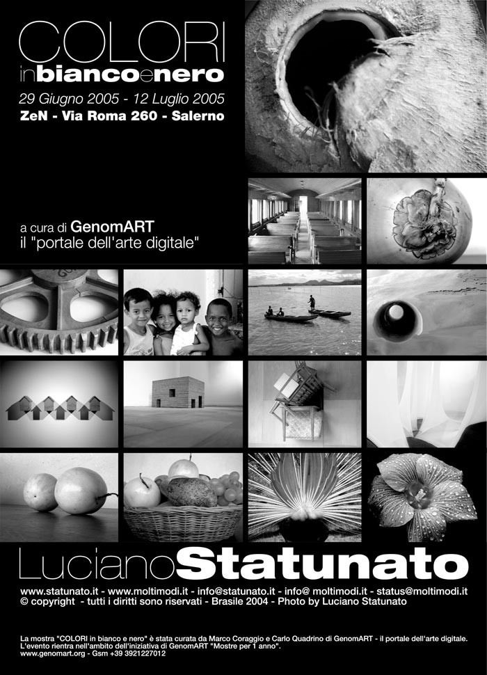 La rassegna fotografica di Luciano Statunato, attraverso una selezione di opere prodotte durante il suo ultimo viaggio in Brasile, testimonia gli sviluppi della sua creatività tecnica e artistica ed il suo rilievo nel contesto internazionale.