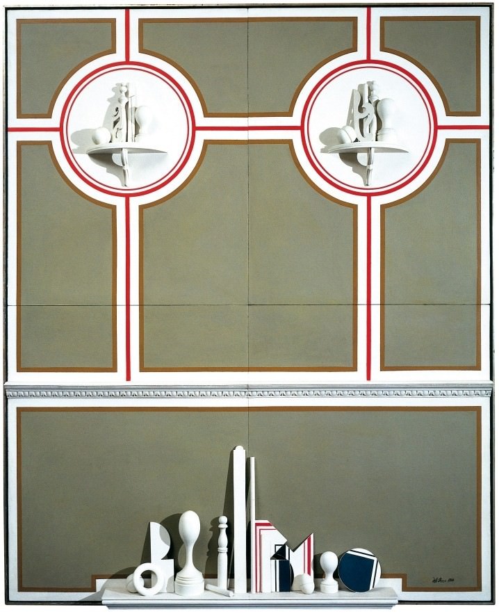 Comunque sia, l’artista napoletano impone le proprie regole con disincanto e, a questo proposito può essere utile ricordare un suo breve testo-poesia scritto nel 1964: Costruzione, composizione, descrizione, assenza, presenza, modulo, sfera, segno, cono, graffito, scavato, tabella, stucco, modanatura, capitello, duttile, fregio, racconto, città, città anonime, necessarie geometrie, (...), bandiera, birillo, popolare, illogico, gioco infantile, logico, assoluto, pensabile, decorato solo se trova una destinazione (...). Questo...lo so...non è una dichiarazione di poetica, ma descrive forse una maniera di agire?
