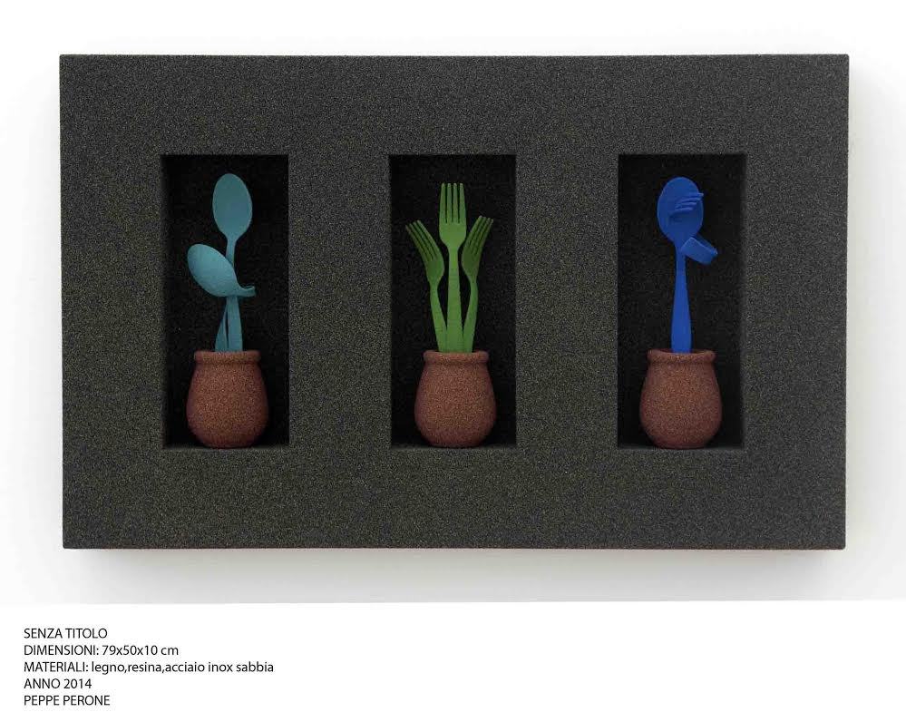 "Lucio Perone riesce ad addomesticare gli oggetti ad essere naturali, a comportarsi come fossero parte della natura oltre che ad avere una loro anima e personalità; mentre è di Peppe Perone l'ibridazione tra cose, oggetti, animali. Ibridazione tra forme che però non troviamo in natura secondo le irreali simbiosi da lui proposte né nella produzione seriale dei nostri utensili" descrive il curatore Marco Tonelli.