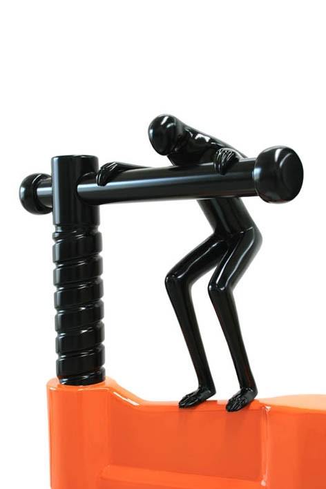 Come un sovversivo del quotidiano, che trasforma l’ordinario in straordinario, Lucio Perone, mettendo in equilibrio gli oggetti più disparati, costruisce paesaggi, o meglio fantasticherie apparentemente casuali, con matitoni, talpe, teste di tonni, vasi giganti, spazzole e altri oggetti/ soggetti diffusi intrecciandoli con materiali e colori industriali. Con l’empito di un arcobaleno limpido e generosissimo di colori mette in scena le sue Visioni che occupano lo spazio della galleria con un lavoro che si abbatte sul pubblico, coinvolgendolo, senza mezze misure. Tra logica e sentimento, o meglio con logica illogicità, e con la capacità di fare grandi salti compositivi, Perone pone il paradosso a metro della sua ricerca. Attraverso le contraddizioni mette in discussione la certa realtà; con il gioco compositivo, e con una regia ben visionaria dello stesso, libera l’angoscia, con l’humour e il non sense cerca di avvicinarci alla comprensione delle cose. Le sue Visioni certo non sono religiose né soprannaturali, anche se l’arte sappiamo può esserlo, ma sono “piccoli eventi” che, pur non essendo in sé reali, traggono origine dalla realtà e possono divenire reali perché altro non sono che l’immagine stessa della vita, la sua complessità e la sua complicità.