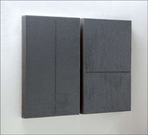 [immagine in alto: A Double, 1974, acrilico su tela su legno, 2 x (30 x 20,4 x 2) cm]