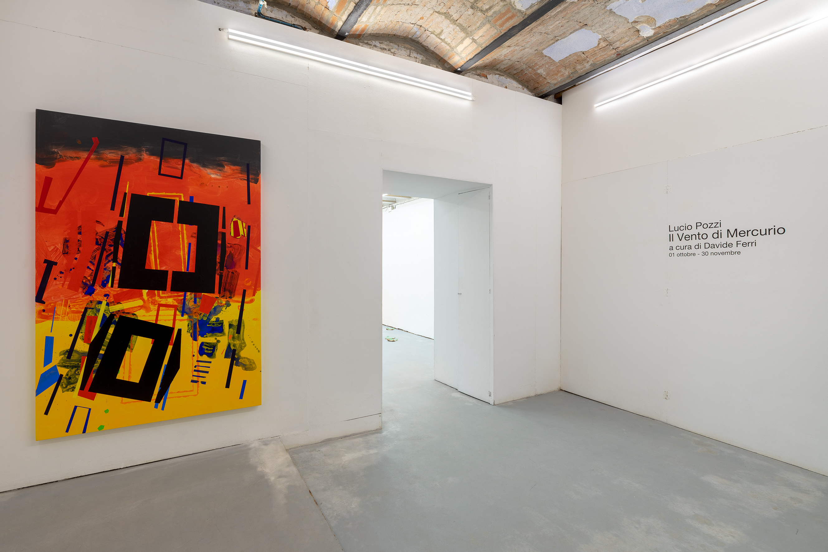Il Vento di Mercurio ribadisce dunque come al centro del lavoro di Pozzi, più che un’affinità o una compattezza stilistica e formale, ci sia quello che l’artista ha più volte definito come “il gioco dell’inventario”: il tentativo di fare pittura attraverso una pratica dalle potenzialità inesauribili, a partire cioè degli ingredienti fondamentali della pittura - il togliere e il mettere, il sopra e il sotto, il dualismo, i quattro colori fondamentali – che generano una gamma infinita di segni e forme, combinazioni e rapporti tra questi. La mostra, inoltre, solleva alcune domande fondamentali sulla ricerca dell’artista e sulla pittura in generale. Il lavoro di Pozzi, ad esempio, è astratto o figurativo? Valgono ancora queste due categorie per definire la pittura? Che cos’è l’autorialità in pittura se non si traduce in uno stile definito? Come passato e presente stabiliscono un rapporto all’interno del lavoro di un artista in cui le serie non si chiudono mai, procedono parallelamente, o si incastrano l’una nell’altra anche a distanza di molto tempo? È possibile definire il suo lavoro all’interno di un qualche periodo o storicizzazione? Esiste, ad esempio, un periodo analitico dell’artista? E se esiste, come definire il lavoro di Lucio Pozzi al di fuori di questo momento del suo percorso, tutto sommato brevissimo? La mostra, più che rispondere a queste domande, le fa risuonare lasciandole senza risposte. Così anche la lettura di un comunicato stampa, come questo, diventa una delle tante possibili letture, uno dei fili conduttori che si intreccia con quelli sviluppati dall’autore, dal curatore, dal gallerista, e dagli spettatori della mostra, ancora da tracciare.