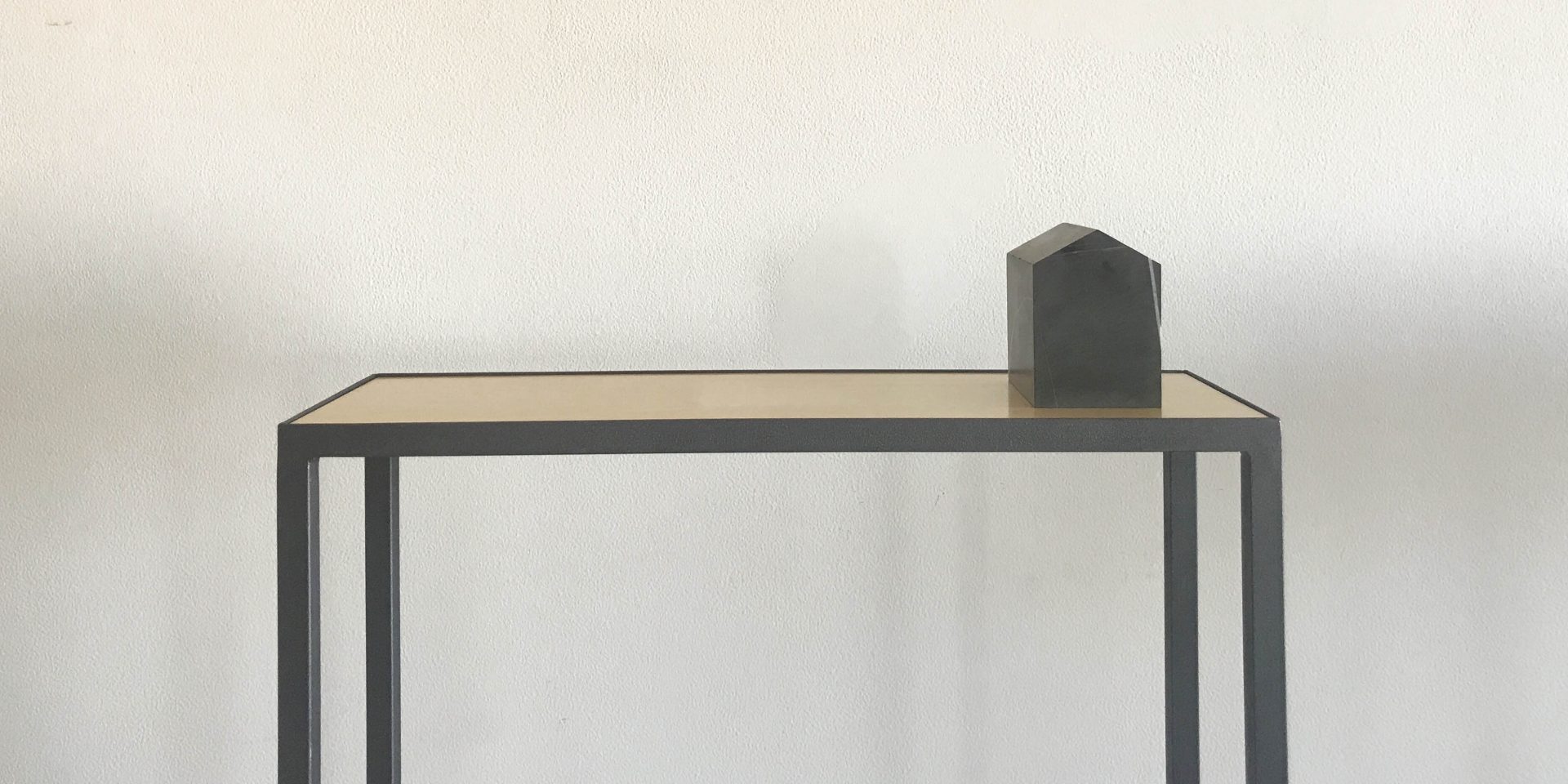 Nelle cisterne che caratterizzano lo spazio espositivo, al centro dello spazio, è poggiato a terra un monolite in pietra nera della Maiella, tagliato a disegnare ancora una casa che farebbe pensare ad un modello di architettura; trattasi invece de la prima pietra, quindi di architettura concreta, che in una primavera inoltrata vorrei portare in dono e mettere a giacitura sulla terra più alta di Lampedusa, dove lasciarla stanziare, nascosta tra la vegetazione, in attesa di un'improbabile realizzazione dell'ambizioso progetto di edificare nell'anima di tutti gli uomini la casa dell'accoglienza.