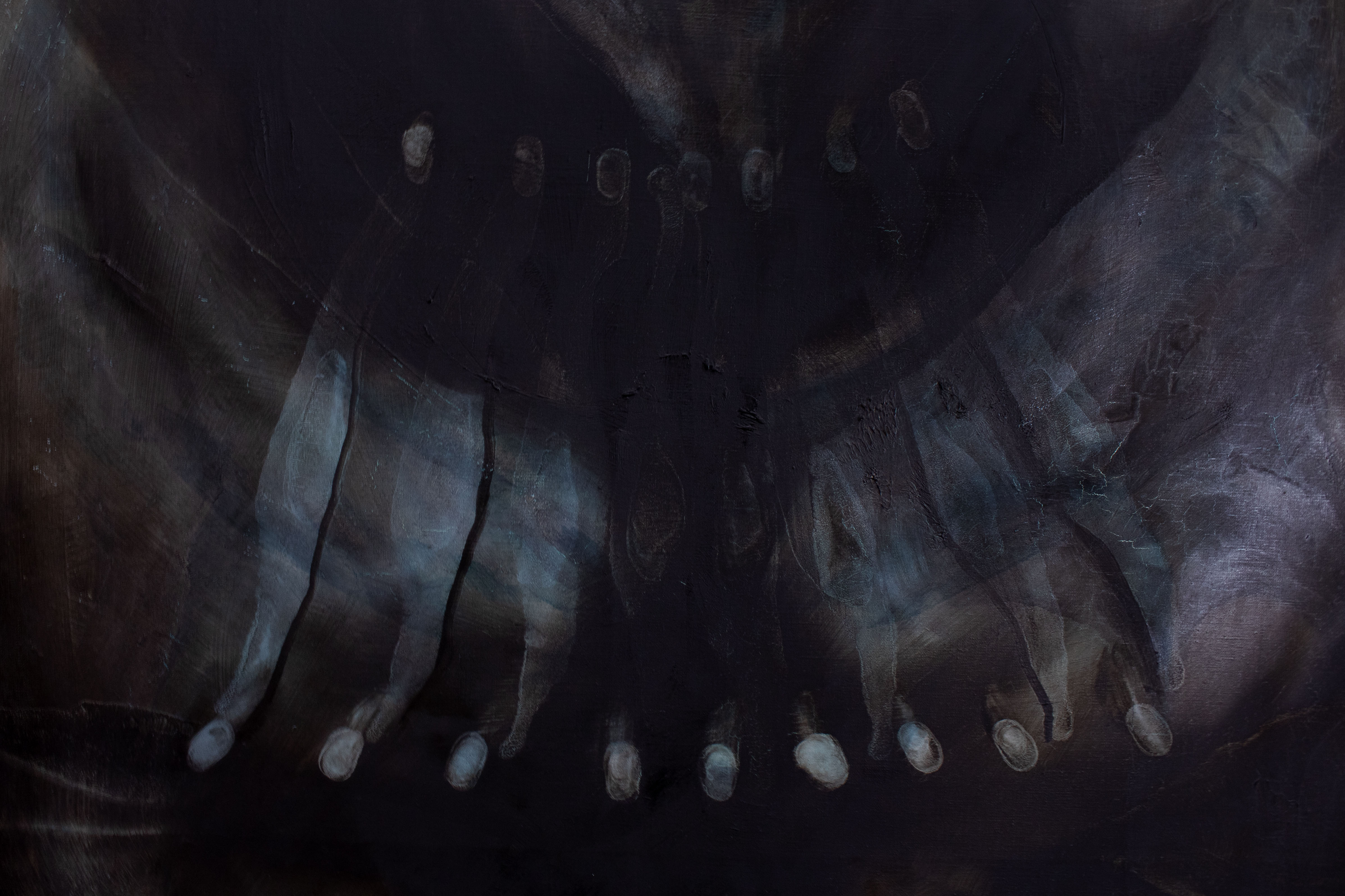 I lavori rimandano a visioni enigmatiche, simili a residui o materializzazioni di esperienze psichiche. Queste semi-astrazioni sfuggono ad un’unica definizione interpretativa e si irradiano spesso verso i margini, mostrandosi in trasparenza come spettri, after-image o allucinazioni. Evocando il corpo per analogia, seguono movimenti ritmici e vitali che si influenzano a vicenda, rimandando a momenti di intima trasformazione.