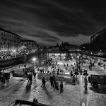 Alle fotografie di Viviani fanno da contraltare gli scatti di Ludovica Sagramoso Sacchetti, creatrice di atmosfere. Spinta dalla voglia di cambiamento e di contatto con nuovi spazi, persone e luoghi, l’artista va alla ricerca di ciò che la attira e la emoziona, principalmente per mettere in relazione gli individui attraverso le immagini. Per questo, restando immersa nelle innumerevoli situazioni che offrono Milano e l’Italia tutta, la vediamo immortalare le contraddizioni insite nella nostra consueta routine: da un parco privo di persone in cui dominano gli accesi colori del fogliame d’autunno, che sembra invitare alla pace e alla contemplazione, si passa al vorticoso andirivieni della Galleria Vittorio Emanuele del capoluogo lombardo, dove i frenetici passanti si fondono agli oggetti in mostra nelle vetrine di negozi e ristoranti, diventando un riflesso di loro stessi, una scia di movimento. E ancora, dal dettaglio di una rossa foglia immersa nel blu di una pozza d’acqua, passiamo all’ampia veduta di un’affollata Darsena meneghina in inverno, ritratta in bianco e nero. «Il pensiero creativo, per definizione, non si accontenta della quotidianità, che già conosce, ma rompe le regole, si apre ad esperienze inedite, cerca nuove risposte», rivela l’artista stessa.