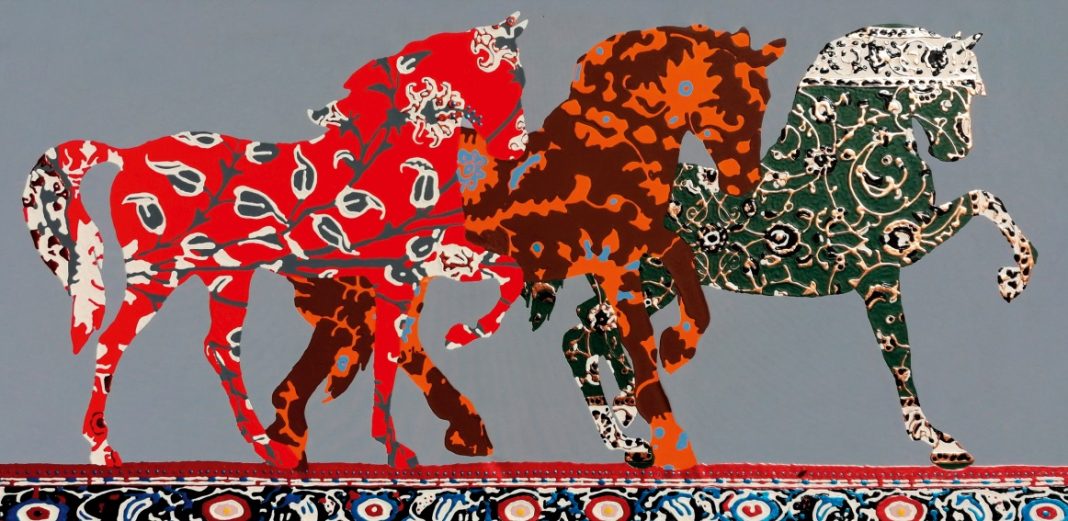 “La mia arte è dedicata al mondo islamico, alla preghiera, alle decorazioni ottomane – dichiara l’artista Luigi Ballarin– La mia interpretazione dei cavalli segue i ritmi bidimensionali della pittura bizantina, decorati con una tecnica originale, contraddistinta da campiture materiche in rilievo, che evocano i mosaici, gli smalti, le decorazioni delle ceramiche, i tappeti. Altri dipinti raccontano il Medio Oriente, con una pittura che diviene una sorta di riflessione silenziosa, con immagini create da piccoli tocchi di pennello, che costellano raffigurazioni quasi astratte. Ho scelto il cavallo come simbolo di unione tra Oriente e Occidente, ispirato ai cavalli di San Marco, opere bizantine divenute emblemi di Venezia”.