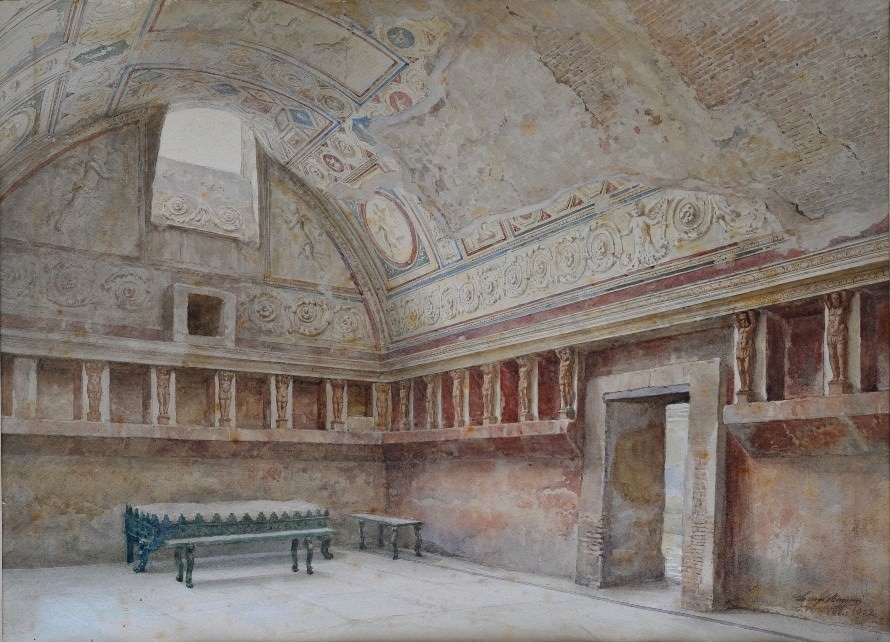 Le strade, i monumenti, le case, gli scorci più belli di Pompei negli acquerelli “dal vero” di Luigi Bazzani, in esposizione dal 4 luglio 2013 al 6 gennaio al Museo archeologico di Napoli.