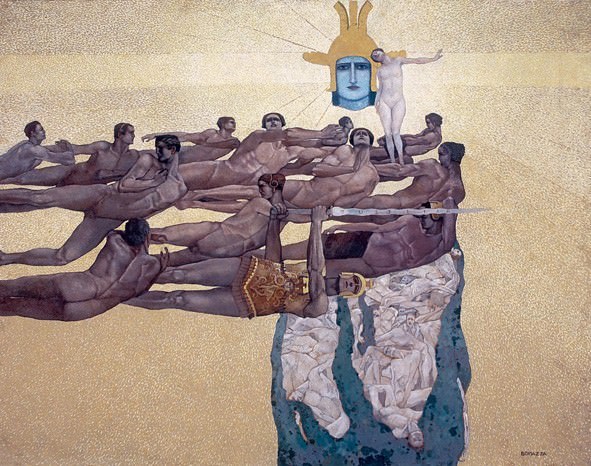 I temi descritti, attraverso un interessante intreccio di opera pittorica e grafica, ripercorrono le relazioni tra mito e allegoria, tra volo e irredentismo, tra paesaggio e territorio.