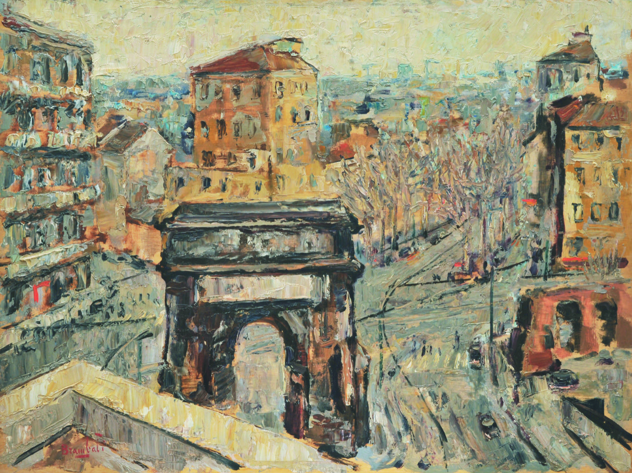 Luigi Brambati è nato a Castiglione d’Adda nel 1925. La sua formazione avviene nel capoluogo lombardo nell'immediato dopoguerra. Frequenta la Scuola del Castello. Si lega d'amicizia con numerosi artisti come Fedeli, Consadori, Castellani, Moro, Labò, Barbieri e Novello. Partecipa alle prime mostre della Permanente e delle Biennali di Brera. Ordina le prime personali alla Galleria Gussoni e richiama subito su di sé le attenzioni critiche di Carrà e Borgese. Sulla scia di Vellani Marchi e Consadori è affascinato dal paesaggio lagunare che ha per polo di attrazione l'isola di Burano. La meta successiva è la Bretagna. Diventerà il luogo più importante della sua pit-tura. Muore dopo breve malattia nel 1983.
