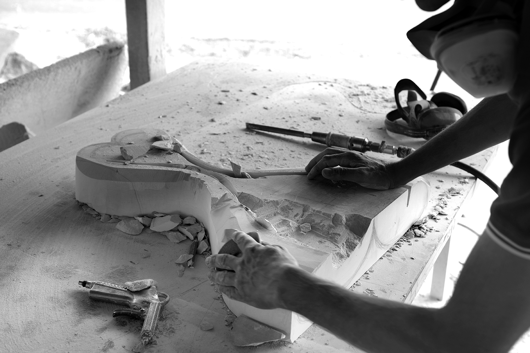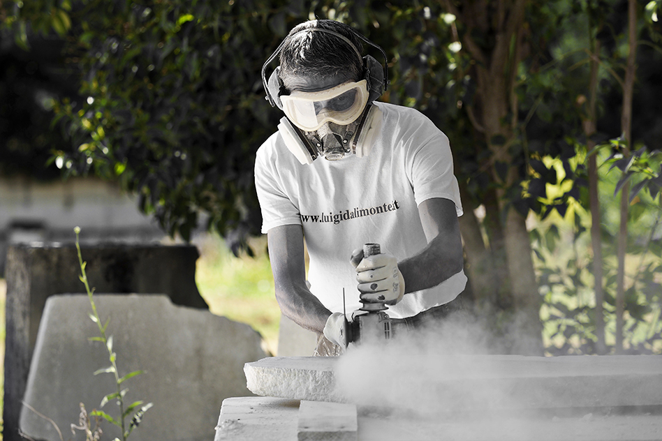 L’opera di D’Alimonte eleva il contenuto culturale di un elemento naturale, la pietra della Maiella, da troppo tempo imprigionata nella gabbia dell’artigianato artistico, per liberarla, proiettandola nel mondo della scultura contemporanea.