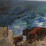 L’acqua è linfa e motrice di vita, indispensabile affinché la terra non sia sterile e deserta. L’acqua, dove stormi gioiosi si abbassano in giochi rinfrescanti, che disseta il viandante, incanta con riverberi di colori finanche negli svaghi estivi spensierati, diventa la linea guida di Luigi De Giovanni che in queste opere vuole descrivere la dissennatezza dell’uomo nell’uso di questo essenziale bene sfruttato e sprecato utilitaristicamente. L’acqua che tutto travolge in onde incontrollabili e distruttive è descritta nell’evento che Luigi De Giovanni propone per la giornata del contemporaneo indetta da AMACI. Una installazione, una mostra e un video che vogliono raccontare la poesia della natura e la follia dell’uomo che la sfrutta senza porsi problemi. Quest’evento è una denuncia del grido di dolore della natura che si ribella dando luogo a disastri incontrollabili, perché l’uomo è stato incapace di prevenirli con opere capaci di arginare gli eventi di devastazione. Inquinamento, sversamenti di materiali, uso senza regole, Luigi De Giovanni usa una narrazione, solo apparentemente muta, efficace, come solo l’arte sa fare, per raccontare la natura e i disastri che l’hanno coinvolta e la coinvolgono. Federica Murgia