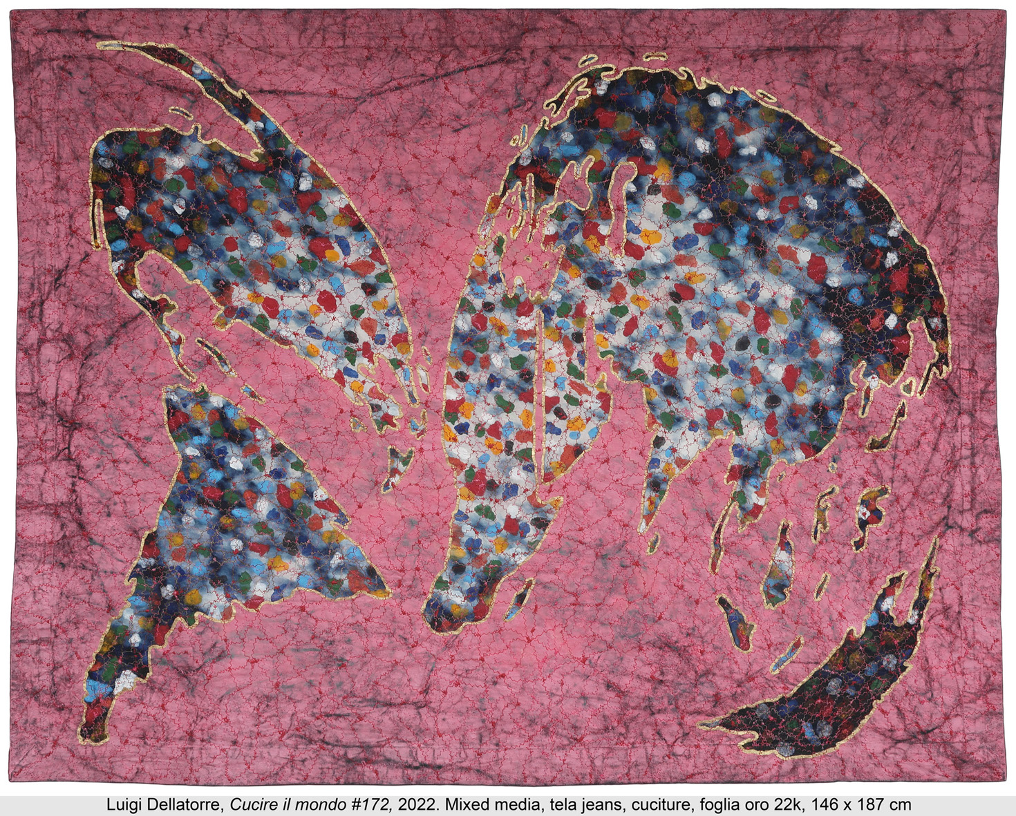 Ed è proprio la metafora della cucitura che Luigi Dellatorre, artista capace come pochi di anteporre il messaggio al mezzo espressivo, usa per riflettere sulle inquietudini e sulle drammatiche emergenze dei nostri tempi, rammentando ad ognuno l’ineluttabile urgenza di assumere, come individui, iniziative etiche responsabili e agire virtuosi comportamenti collettivi volti al benessere comune.