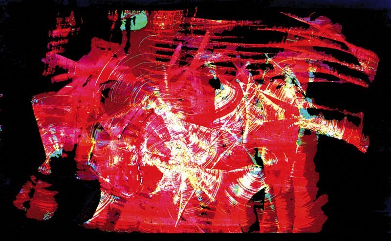 L artista Ferretti ritrova , andando a ritroso nella sua memoria , dei lavori degli anni ‘ 70 : negativi rielaborati , graffiati , in modo informale nei quali il colore diventa portante di creazioni immaginarie nelle quali strutture vorticose prendono forma luminose e intense .