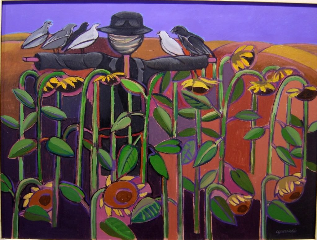 Il primo ricordo che ho di Ginetto Guerricchio, di quest’artista capace di essere beffardo e canzonatorio, innanzitutto con se stesso e poi con l’intero sistema del “birignao intellettuale” (quello che ruota intorno ai “vernissage artistici”) è legato a un programma radiofonico, della struttura Programmi della sede regionale della RAI di Basilicata (al tempo diretta da Nanni Tamma) da me curato - quale autore testi - e che s’intitolava “Uomo e territorio”. In quell’occasione Ginetto, reduce da un’importante mostra collettiva nazionale (svolta dalle Regioni Piemonte e Basilicata, di concerto con l’Istituto “Alcide Cervi”) sul tema “Arte e mondo contadino” (curata da Mario De Micheli) tratteggiò con poche, incisive, chiare e al tempo stesso lapidarie parole – tipiche del suo dialogare - il suo universo “visuale/descrittivo” fatto, sì, di contadini e di contadine (ritratti nei campi o raffigurate in scene di vita urbana) ma, anche, fatto di girasoli, di agrumi al cesto, di collane di peperoni secchi, di pietre di tufo, di embrici, di tetti piatti e di larghi, smisurati, scorci architettonici, catturati alle normali “geometrie urbanistiche” del Sasso Barisano e del Sasso Caveoso, a Matera.
