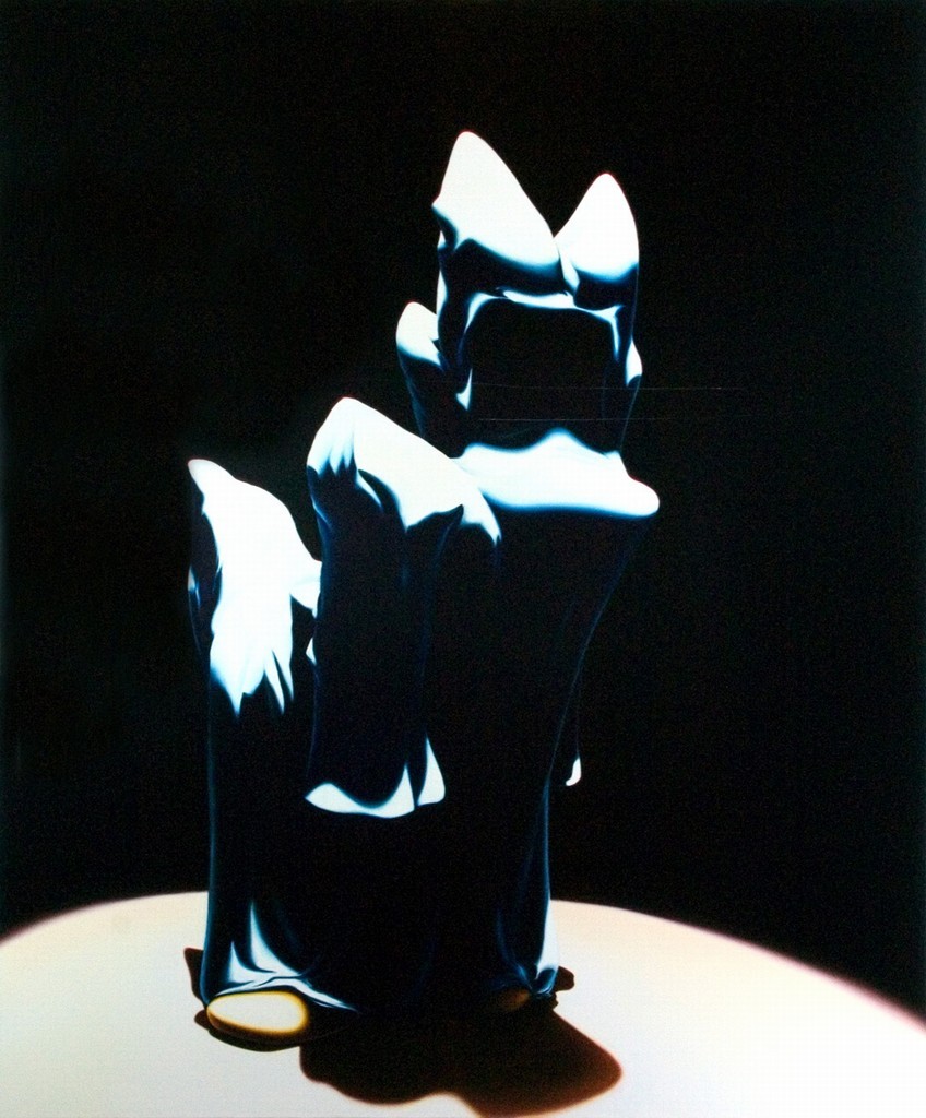 Al pari dei dipinti anche gli oggetti diventano parvenze, fantasmi (in senso letterale) degli oggetti reali e non loro rappresentazioni. Il disco, le lampadine o le buste di latte Granarolo sono visti e percepiti senza l’aiuto dei sensi, ed anche se ci vengono restituiti con nettezza e precisione ci lasciano intravedere la loro provenienza, il loro essere altrove. La maestria esecutiva che riproduce in modo tridimensionale la busta di latte ad acquaforte è dunque talmente necessaria che non viene neppure esibita nella sua semplicità cristallina, ed è forse proprio attraverso un esecuzione così minuziosa ed accurata che l'oggetto è privato della sua materialità sensibile, e ce ne viene restituita una visione preliminare della sua essenza distante anni luce dalla serialità pop.