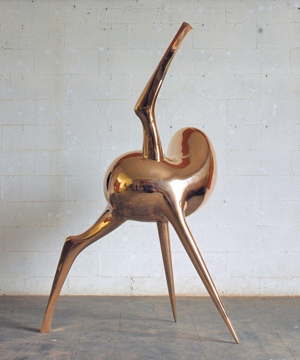 Una scultura in bronzo dal titolo “scossa” che rappresenta una forma caratteristica della creatività di Mainolfi, un corpo ibrido, un insieme di elementi antropomorfi, zoomorfi, fitomorfi e il mitologici.