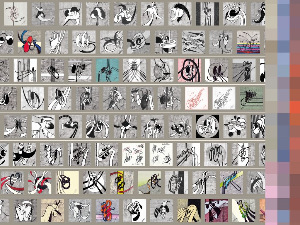 non una semplice rassegna delle opere pittoriche, ma la compresenza tra queste e la “registrazione grafica su nastro” di un copioso patrimonio di intuizioni, che le hanno anticipate e seguite in formato-progetto…nel corso di una feconda vita di esplorazioni.