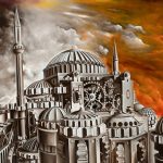 La pittura di Antonio Servillo si inserisce in questa dialettica del reale, tra la ricerca di un paradiso perduto ed il rischio di sprofondare nell’abisso, nel tentativo di capire dove si orienta l’attuale società. Egli si dimostra sensibile agli avvenimenti dell’ultimo quarantennio di storia, da quando cioè ha iniziato la sua attività pittorica: i suoi quadri fioriscono sul terreno della globalizzazione negli anni 80 del secolo scorso, del crollo del muro di Berlino nel 1989, delle guerre successive, della diffusione di Internet negli anni 90, nel crollo delle torri gemelle del 2001, del terremoto del 2002, della pandemia degli ultimi anni, dell’affievolimento della fede cristiana e di altre religioni, che continuano comunque a dare un orientamento che va oltre i confini della vita umana.