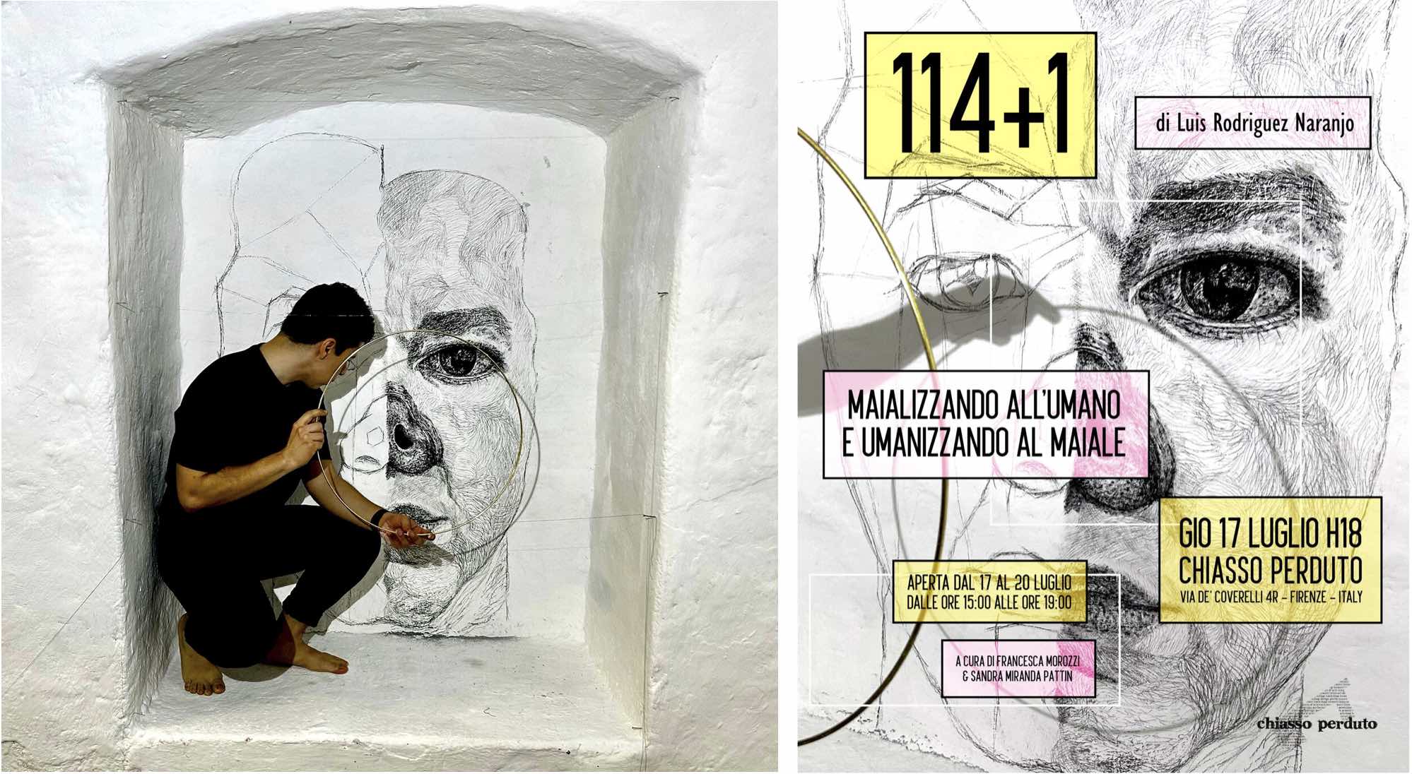 L’intervento in situ al Chiasso Perduto dell’artista messicano Luis Rodriguez Naranjo nasce da una personale e persistente visione del mondo: quella di maializzare l’umano. Non si tratta né di una postura animalista, né di una critica sociale, e nemmeno di un'illustrazione, ma di un universo iconografico e concettuale che nasce da una "sana ossessione" maturata sin dall'infanzia in una famiglia di allevatori, dove i suini popolavano le fattorie.