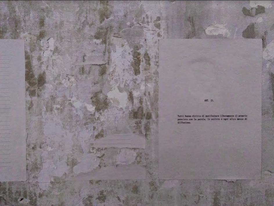 La scrittura è la concretizzazione di un desiderio di permanenza prettamente umano, che forse trova la sua massima espressione in quanto manifestazione, dichiarazione di una volontà collettiva che volge all’immortalità.” Il nero su bianco è stato l’incipit di una riflessione su di un gesto che è principio di tutta la forza comunicativa su cui, oggi come in passato, si fonda l’umanità: la scrittura. Sforzo ultimo di una volontà comunicativa, di diffondere e di permanere dunque, essa è l’attività umana su cui si sono espresse le civiltà, dalle più antiche a quelle odierne, capace di evolversi con esse, palesando una natura liquida. La visione artistica qui è più profonda e volge alle fondamenta della scrittura, generatrice di testi dal forte potere di aggregazione sociale, religioni, etnie e scuole di pensiero. Testi come la Costituzione, sacri etc. sono una testimonianza concreta, nero su bianco appunto, della coesistenza di una collettività manifesta in molteplici forme comunicative.