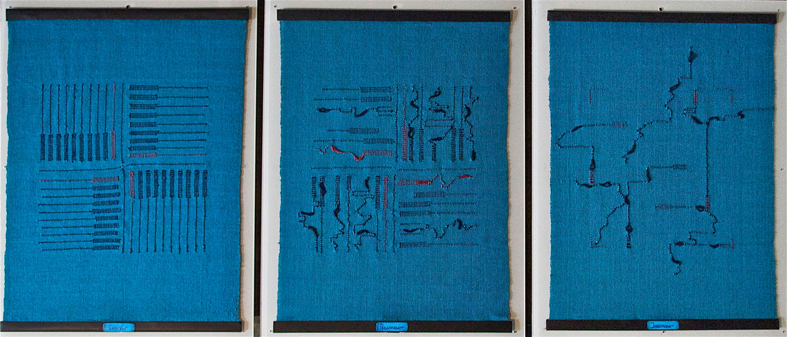Frutto di un percorso creativo che intreccia l'esperienza diretta della materia con un approfondimento teorico basato sugli studi di Percezione Visiva e di Gestalt, questi lavori rivelano una ricerca stratificata e profonda. In alcune opere, ispirate alle poesie di Emily Dickinson, filo, colore e luce si fondono con la parola poetica, che affiora nella trama tessile trasformandola in un’invocazione con richiami alle insegne e alle affiches di fine Ottocento.