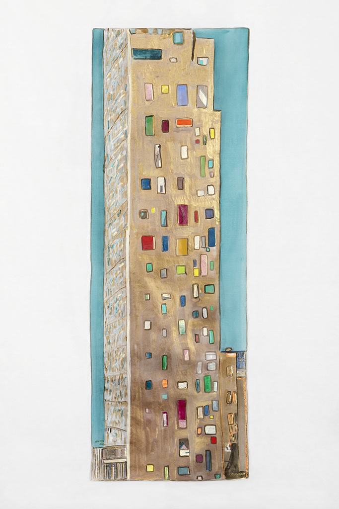 Nella serie di grattacieli di Longo le regole prospettiche sono sovvertite per lasciare posto all’emozione, alle suggestioni cromatiche create dal gioco di riflessi luminosi e trasparenze, al dialogo fra l’esistente e il percepito.