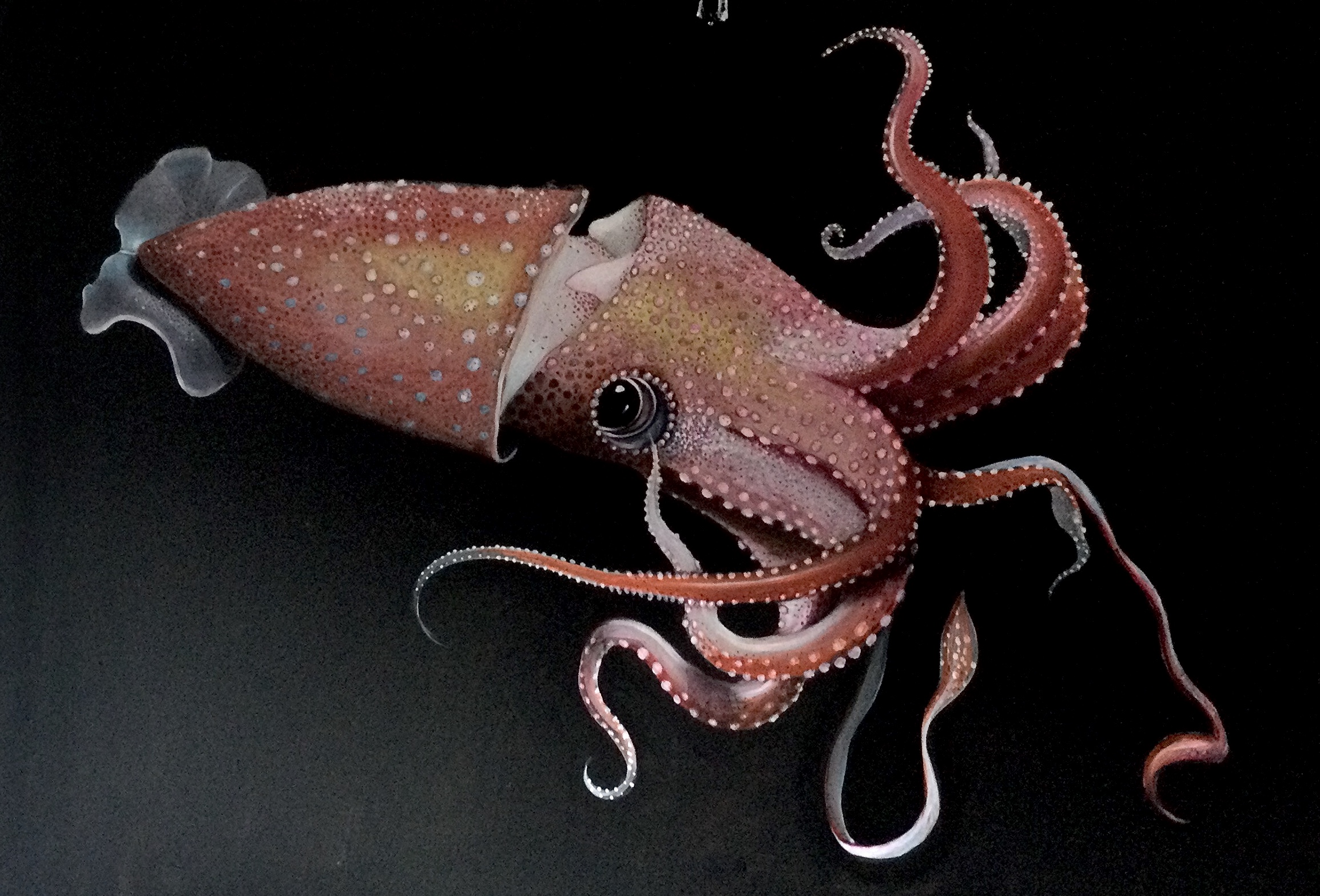 Questi ritratti non sono la pedissequa riproduzione su tela di creature domestiche o note, piuttosto ci mostrano un catalogo esotico e insolito, selezionato in base a gusci o epidermidi dal fascino decorativo o a linee marcate da colori magnetici che, nella trasposizione, diverranno tinte forti e sgargianti. E lo sfondo nero, l’oscurità che li avvolge, non è un semplice escamotage accademico per portare alla ribalta il soggetto; piuttosto è anch’esso spunto e tema di riflessione, poiché, esaltando la solitudine e la precarietà, sottolinea la pena provata dall’autrice per le difficoltà incontrate dagli animali nel mondo selvaggio in cui vivono, dove la sopravvivenza è spesso ardua e mai garantita. In questa prospettiva, non è certo un caso, che un numero considerevole delle raffigurazioni sia dedicato a specie in via d’estinzione o sempre più prossime a questo triste traguardo.