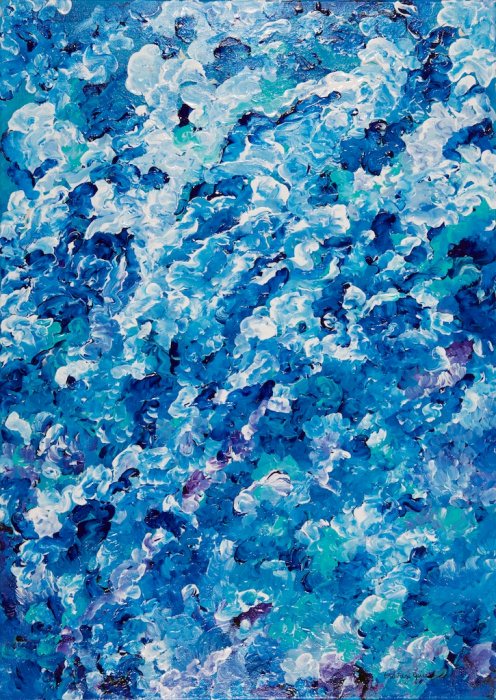 Pittura tutta d’emozione, basata su tre elementi fondamentali: colore, gesto e materia con il prezioso e insostituibile supporto della luce.