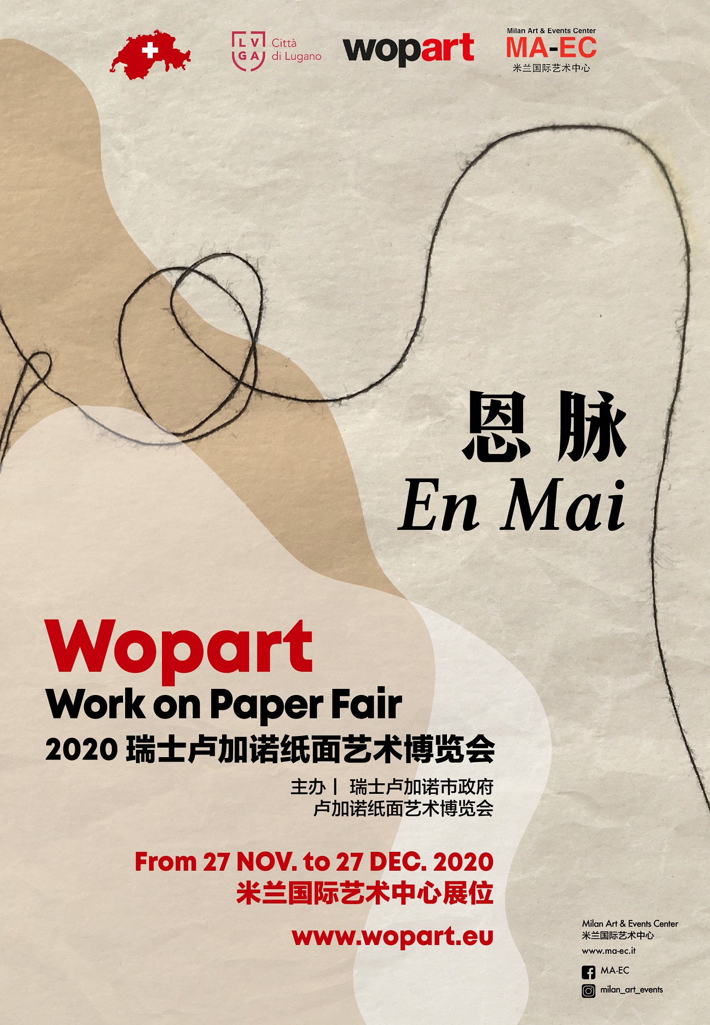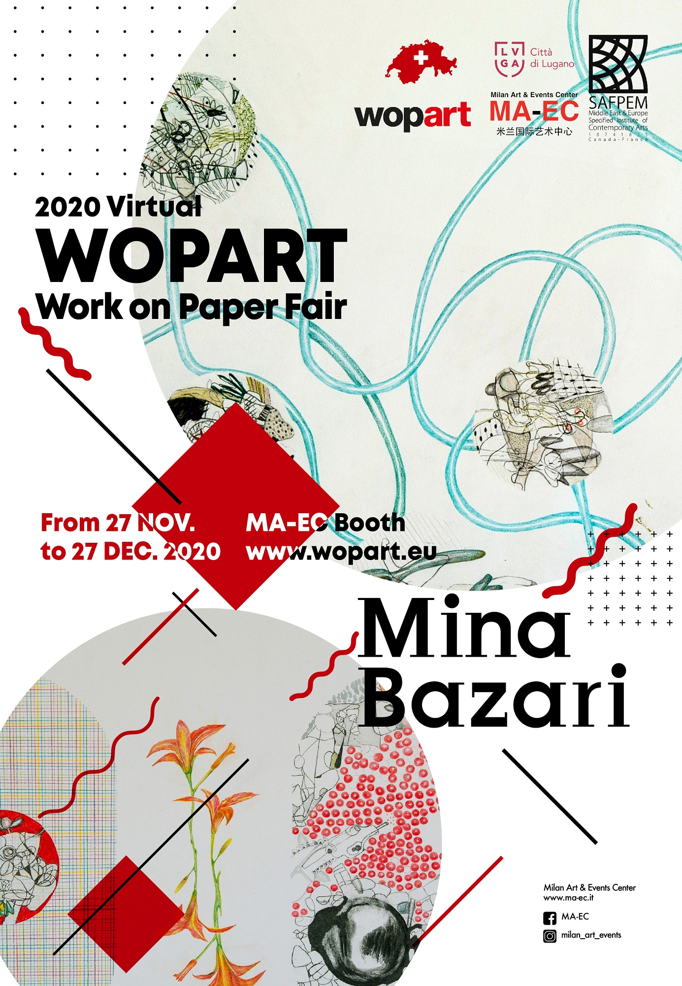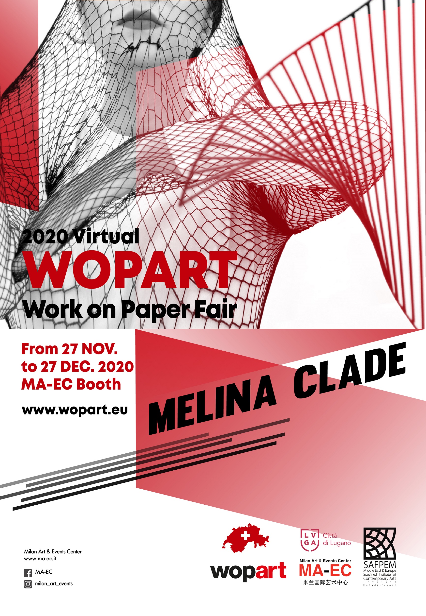 Anche quest’anno MA-EC Gallery partecipa a Wopart, la fiera internazionale di Lugano dedicata prevalentemente alle opere d’arte su carta, giunta alla sua quinta edizione. Dopo un primo spostamento delle date da fine settembre a fine novembre, gli organizzatori hanno deciso di rinunciare allo svolgimento fisico per un trasferimento in 'Virtual Fair'. "Decisione inevitabile" per una "situazione troppo pericolosa", commenta Alberto Rusconi, presidente di WopArt; "Ci abbiamo sperato fino all'ultimo" aggiunge il direttore Paolo Manazza.