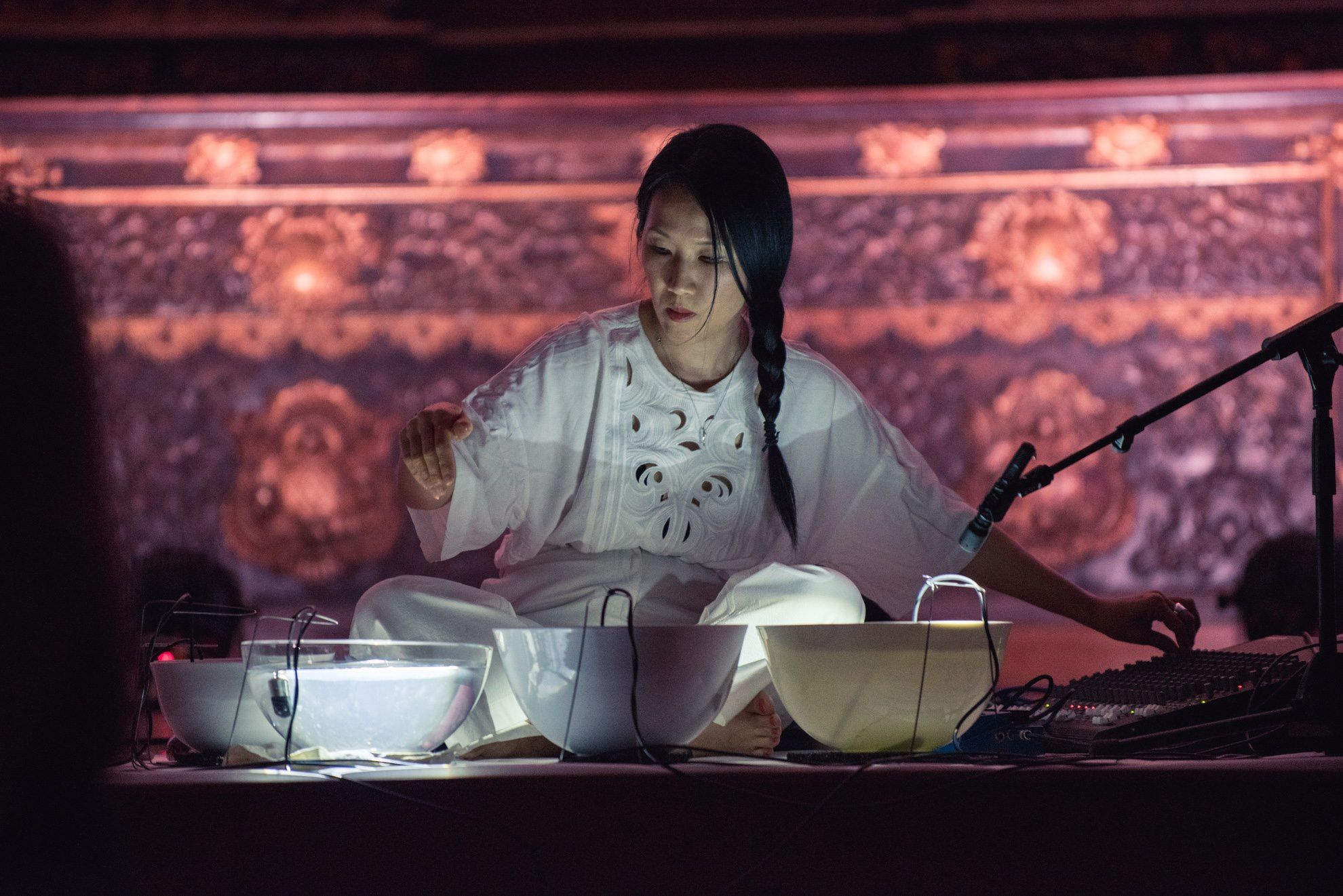 musicista e sound artist giapponese di stanza a Parigi, ha realizzato performance, mostre e workshop in Europa, Stati Uniti, Canada e Giappone. Le performance di Tomoko Sauvage vertono su un delicato equilibrio fra controllo e apertura al caso, alle percussioni accidentali di gocce, alle caratteristiche acustiche dello spazio e alle fragili tonalità create a partire da materiali fluidi ed effimeri, in un processo di costante movimento e dissoluzione. Oltre alla sua ricerca in solo, Tomoko ha collaborato con musicisti e coreografi fra cui Frédéric Nogray, Nicolas Lelièvre, Brigitte Chataignier, Francesco Cavaliere. In 'waterbowls', la performance proposta per ARCHIPELAGO, l'artista lavora con ciotole e recipienti di porcellana di diverse dimensioni, riempiti d'acqua e amplificati con idrofoni. La sua ricerca nasce dall'acqua nelle sue diverse forme – gocce, onde e bolle – dalle risonanze dei contenitori, così come dal feedback audio, dando origine a tessiture di drones e overtones naturali.