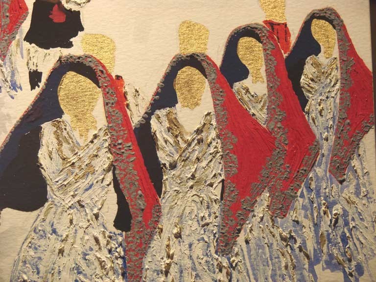 Tecniche miste che, occhieggiano al Novecento sardo, ma non perché trattino di una manifestazione in costume, bensì per la fissità delle forme e per le subitanee esplosioni di azzurri e di rossi. I quadri offrono altresì contrasti evidenti: nel tema, quando vengono raffigurati episodi anticlassici che sono quasi dei fuori scena, come le donne che parlano, e nella forma quando i soggetti in primo piano (e i loro costumi) sono materici in un ambiente che spesso è indistinto, indefinito perché solo abbozzato.