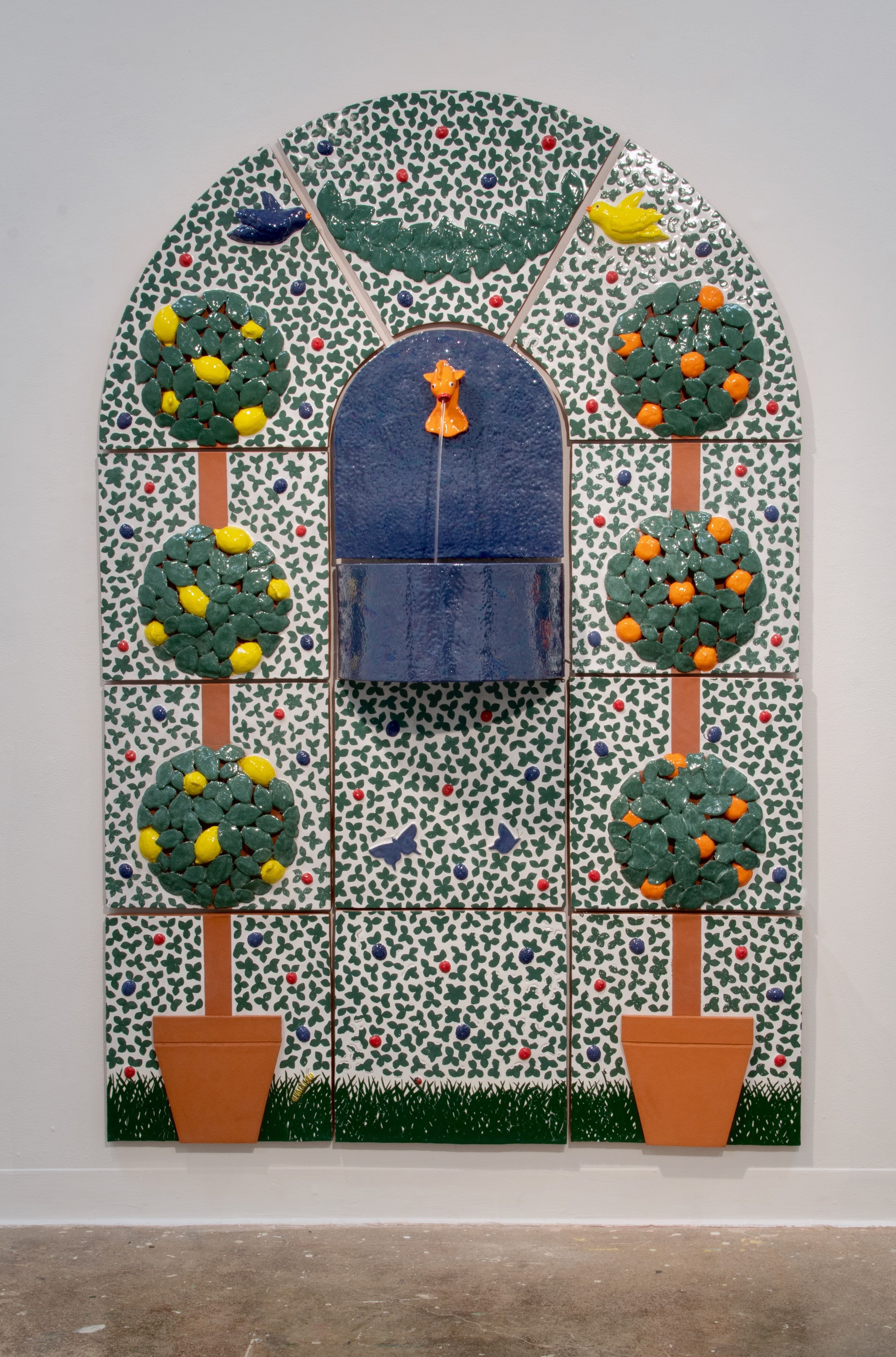 Orto Botanico è un omaggio al giardino romano, dai giardini peristili dell'antichità ai vasti giardini curati dei palazzi dell'inizio dell'età moderna. Ispirandosi alla maiolica rinascimentale italiana, l'opera porta le affascinanti meraviglie del giardino nella galleria, accompagnando lo spettatore in un viaggio nella mente dell'artista.